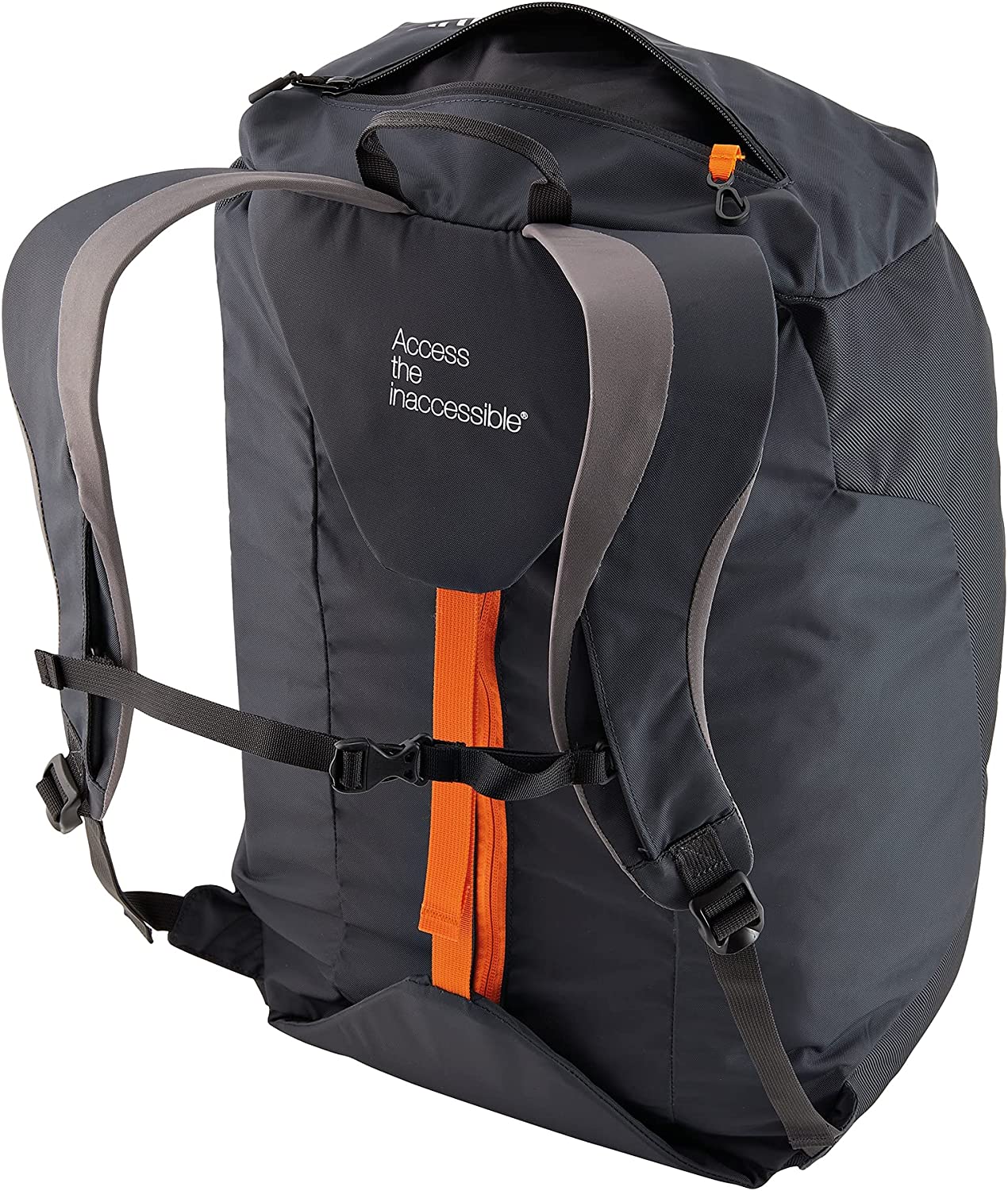 • MAXIMUM STORAGE WITHOUT THE BULK: 36-liter volume. Stows up to 100 m of rope, as well as all other climbing gear (such as harness, quickdraws, and shoes). Two internal handles make it easy to store the rope. Zippered pocket provides quick access to topo map, phone, keys, and other items.