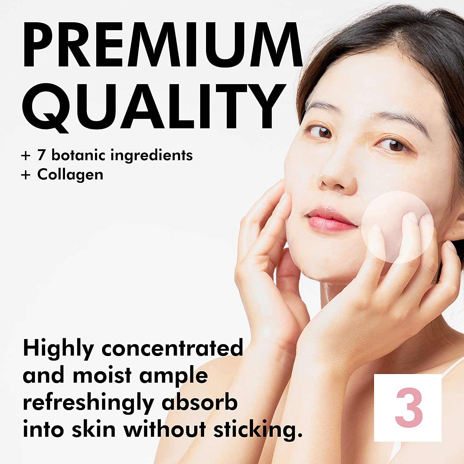 30ML AMPLE - The collagen face mask for face mask beauty contains 30ml worth of ample. A single face sheet mask that we provide contains 30ml, meaning that you do not have to worry about the skin care mask drying out or lacking essence as we try to give the most to our customers. The collagen mask contains enough essence for you so that you can apply the essence on to your arms and legs as well.