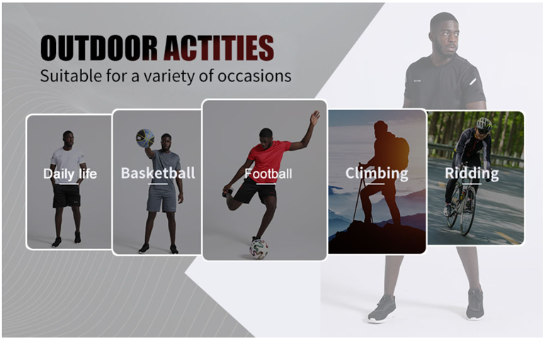 WEARING OCCASIONS--- You can use it for running,cycling, running, hiking, jogging, boxing, etc. field outings, some ball sports(Basketball, football, tennis, etc.), fishing, yoga, mountain climbing, and other outdoor activities, or you can wear it in training in the gym.