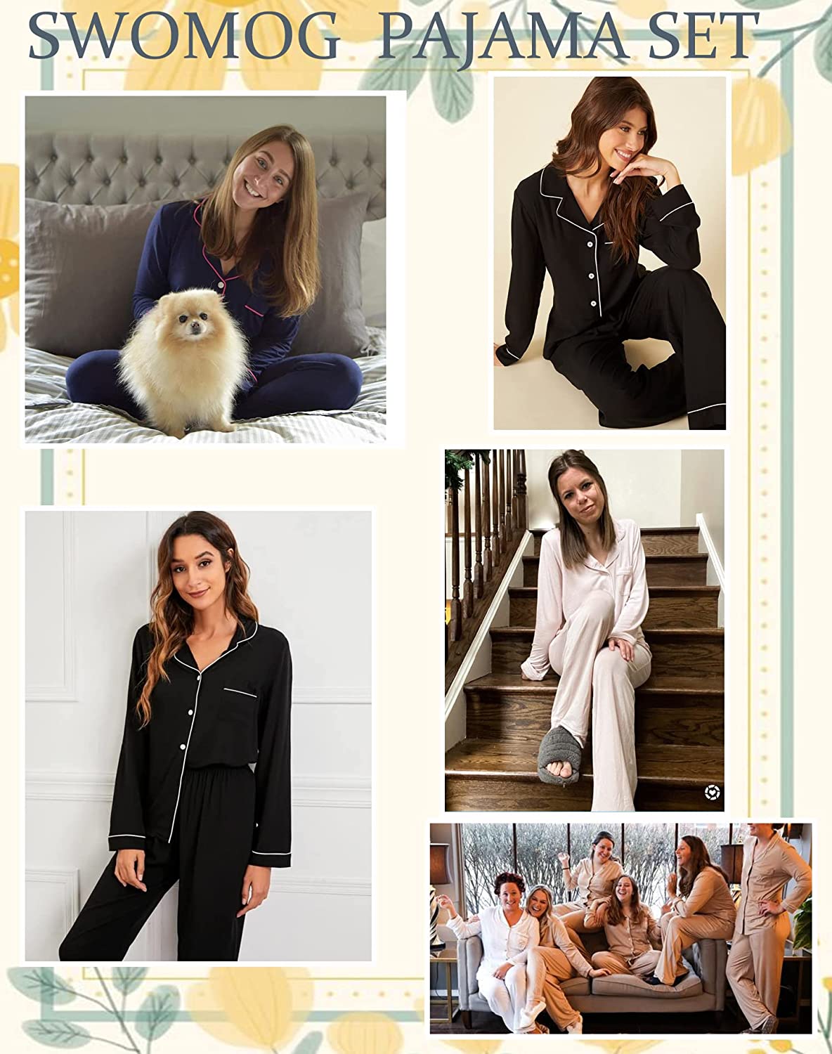 • ❤SOFT TOUCH:SWOMOG women long sleeve pajama set made of high quanlity modal fabric,lightweught ,breathable,ultra soft and comfortable,let you soak through to the PJ while sleeping