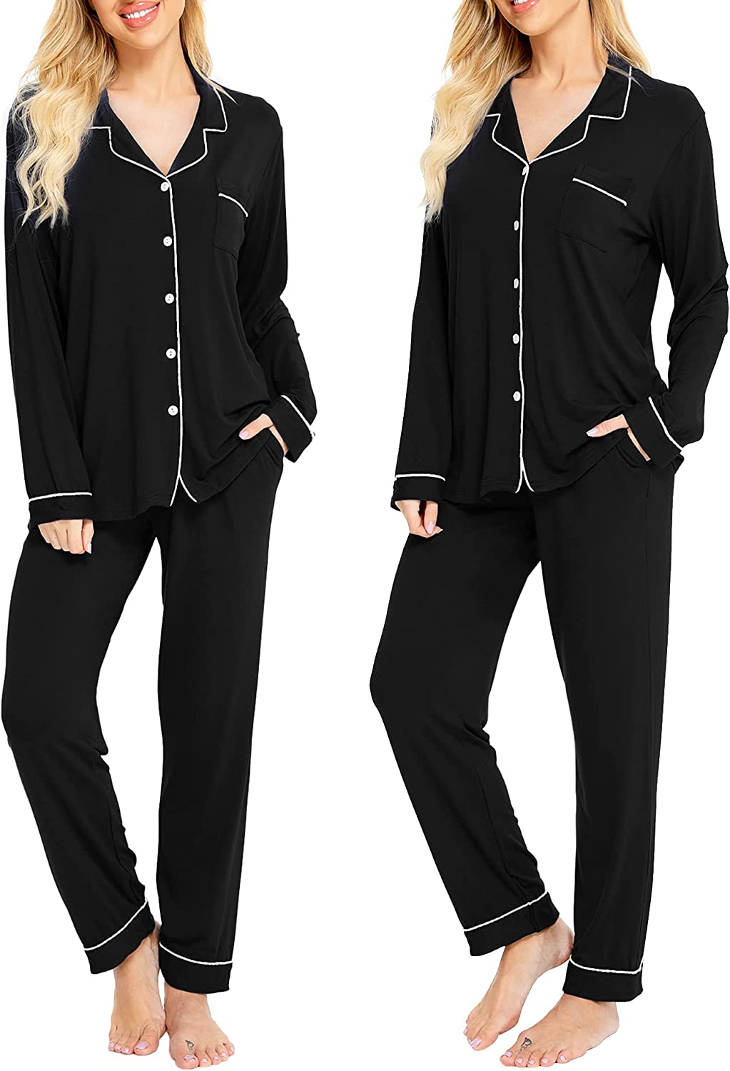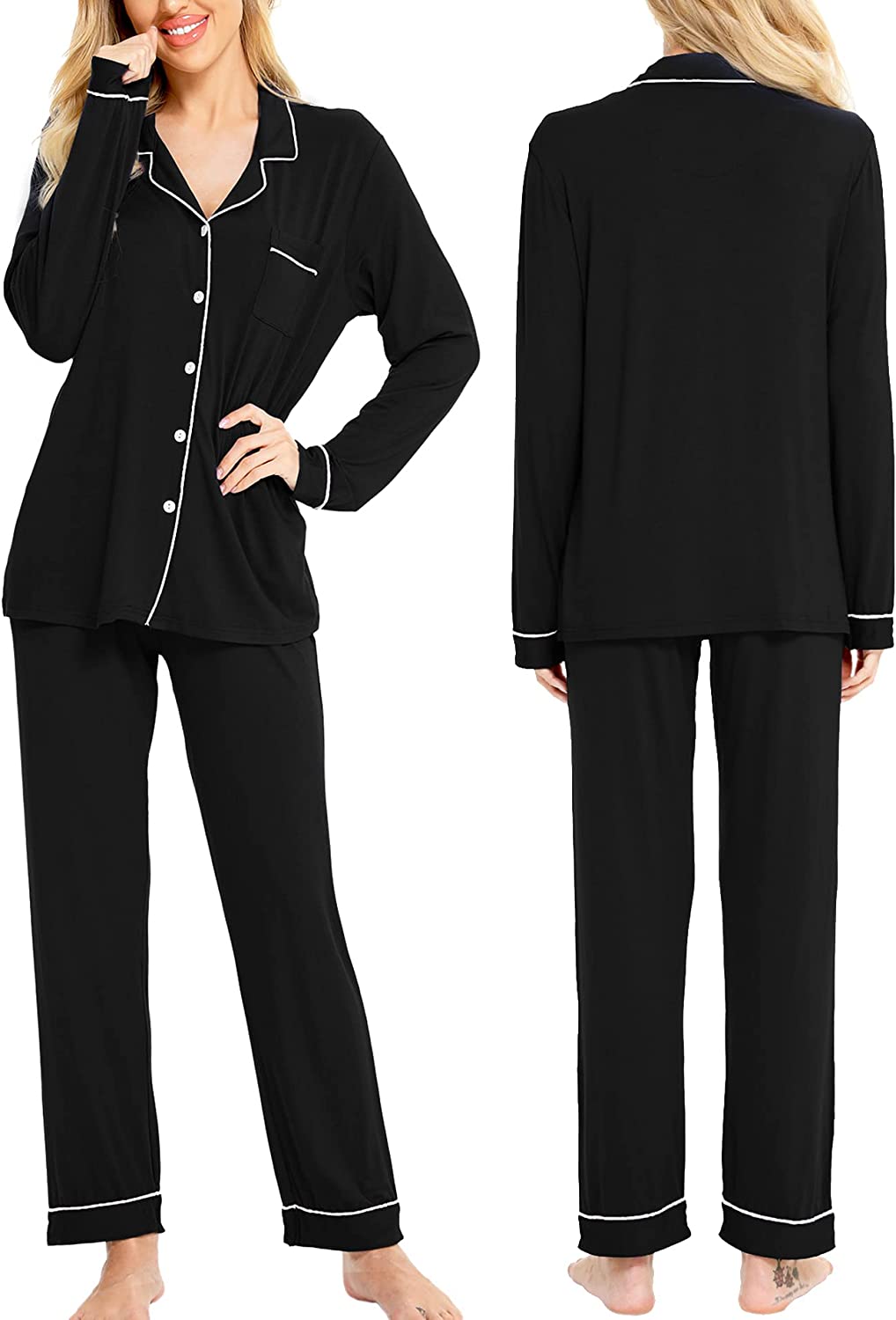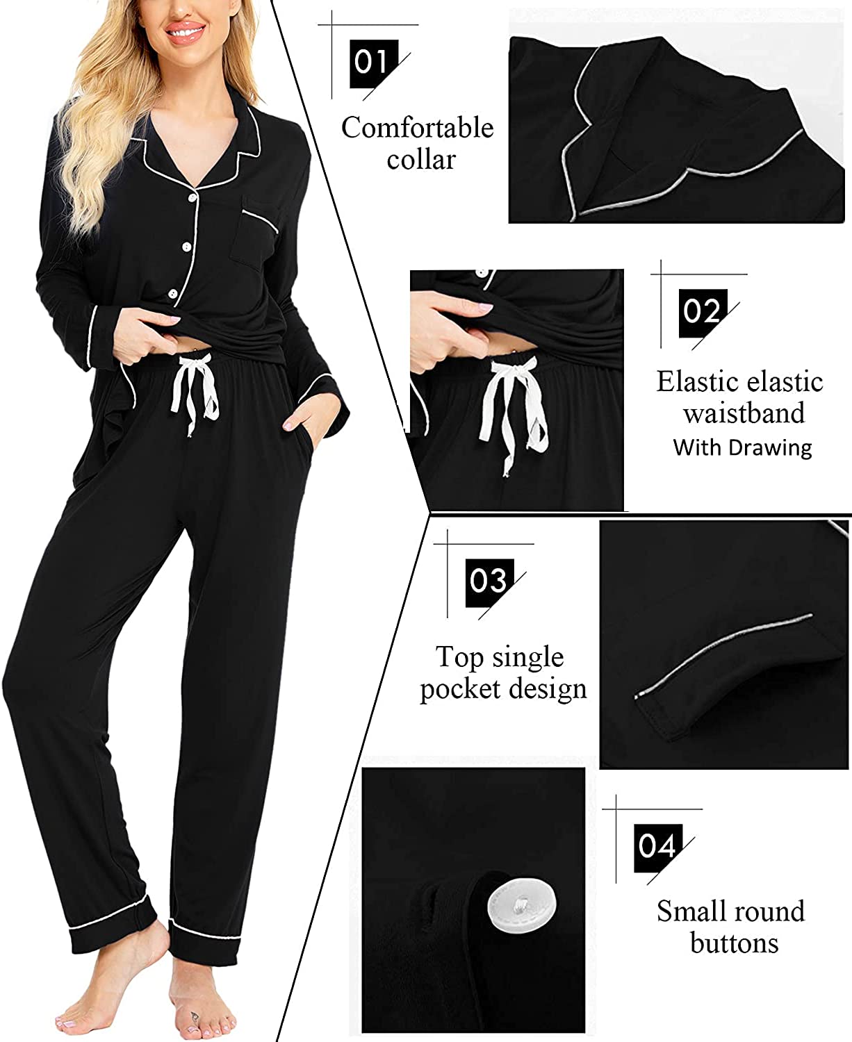 • ❤TWO-PIECE CUTE SLEEPWEAR:Our pajama set consist of long sleeve boyfriend style top and long pant.Notch collar and the button-front top with a chest pocket and contrast piping,drawstring elastic waistband makes it fit better.Enjoy your next pajama party in this comfy soft PJ set