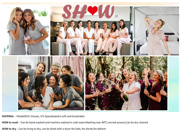 • Comfy Pajamas Set: The pajamas is made of soft modal, which is so stretchy to wear and makes you comfortable in the lounge and sleeping time. The pajamas material supports machine wash and hand wash.