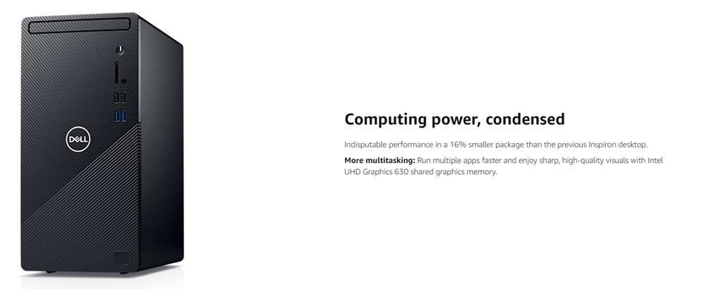 Dell Inspiron 3880 Desktop Computer - Intel Core i5 10th Gen, 12GB Memory, 512GB Solid State Drive, Windows 10 Pro, 2 Year On-Site - Black