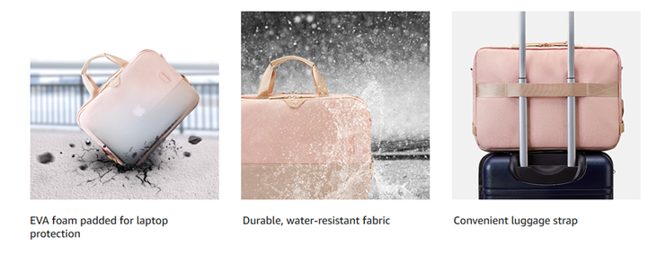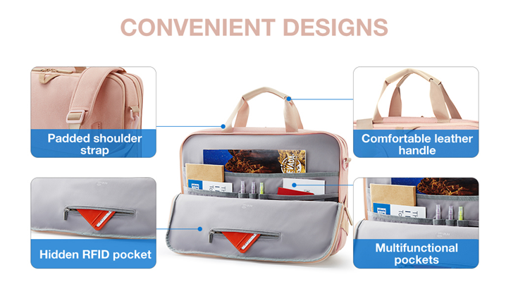 • CONVENIENTE DESIGN- anti theft RFID pockets for value items, durable leather handles, adjustable padded shoulder strap and luggage strap can be attached to different suitcases
