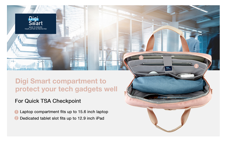 • TSA FRIENDLY- A separate DIGI SMART compartment can hold 15.6 inch Laptop as well as 15 inch, 14 inch Macbook, 12.9 inch iPad, and tech accessories like charger for quick TSA checkpoint when traveling