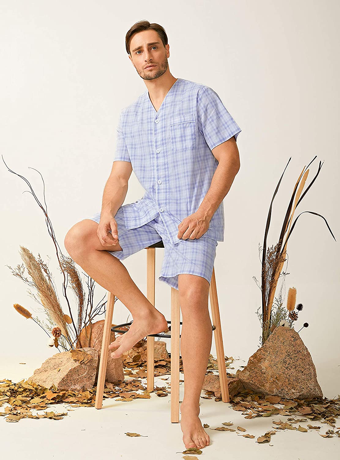 Customized Fit: The short pajamas pants for men features a relaxed straight leg and an elastic waistband with adjustable drawstring, enable the most convenient and practical wearing experience