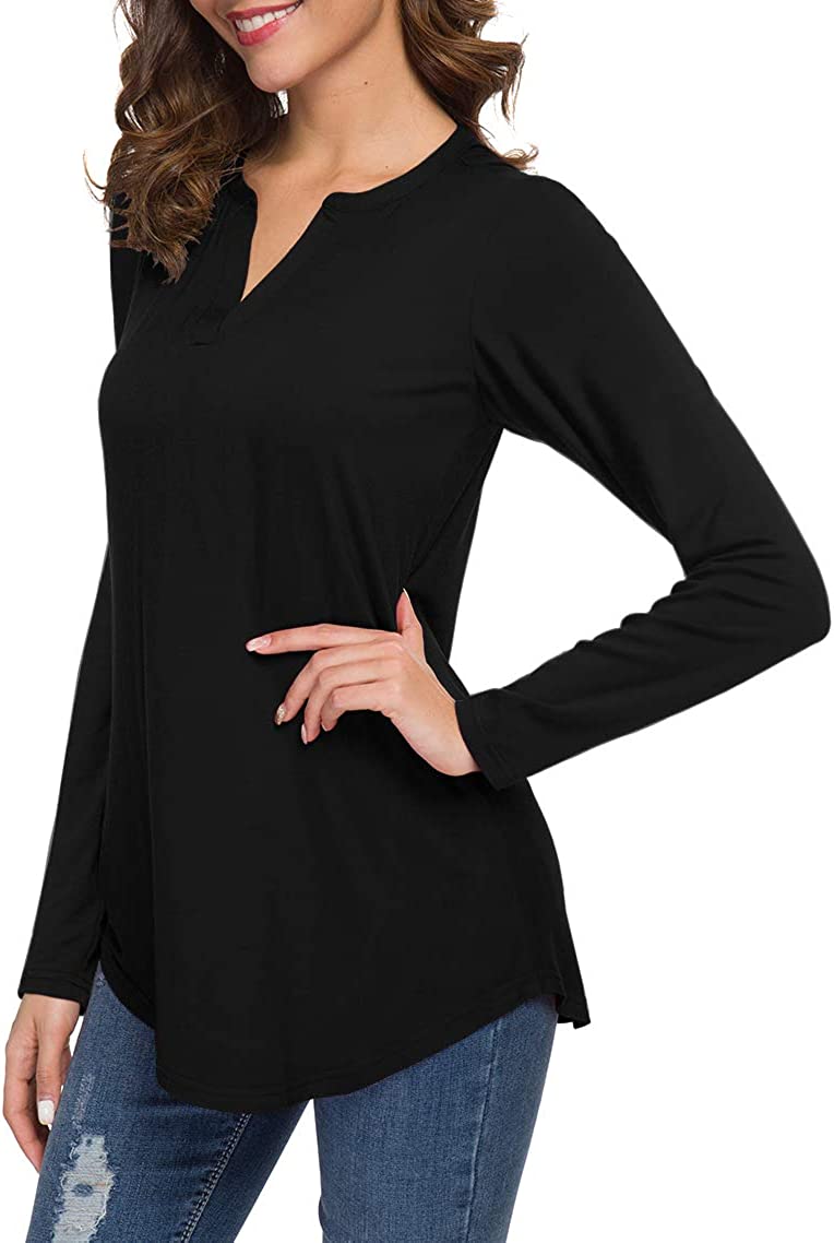 Style: Tops V neck can let your neck line looks more slender and graceful. Breathable and comfy fabric suits for autumn also wear with a coat outside in the cool days. Easy to pair with jeans, tight pants, casual pants, leggings and shorts. Perfect to dress up any style of skirts, great for work with high heel.
