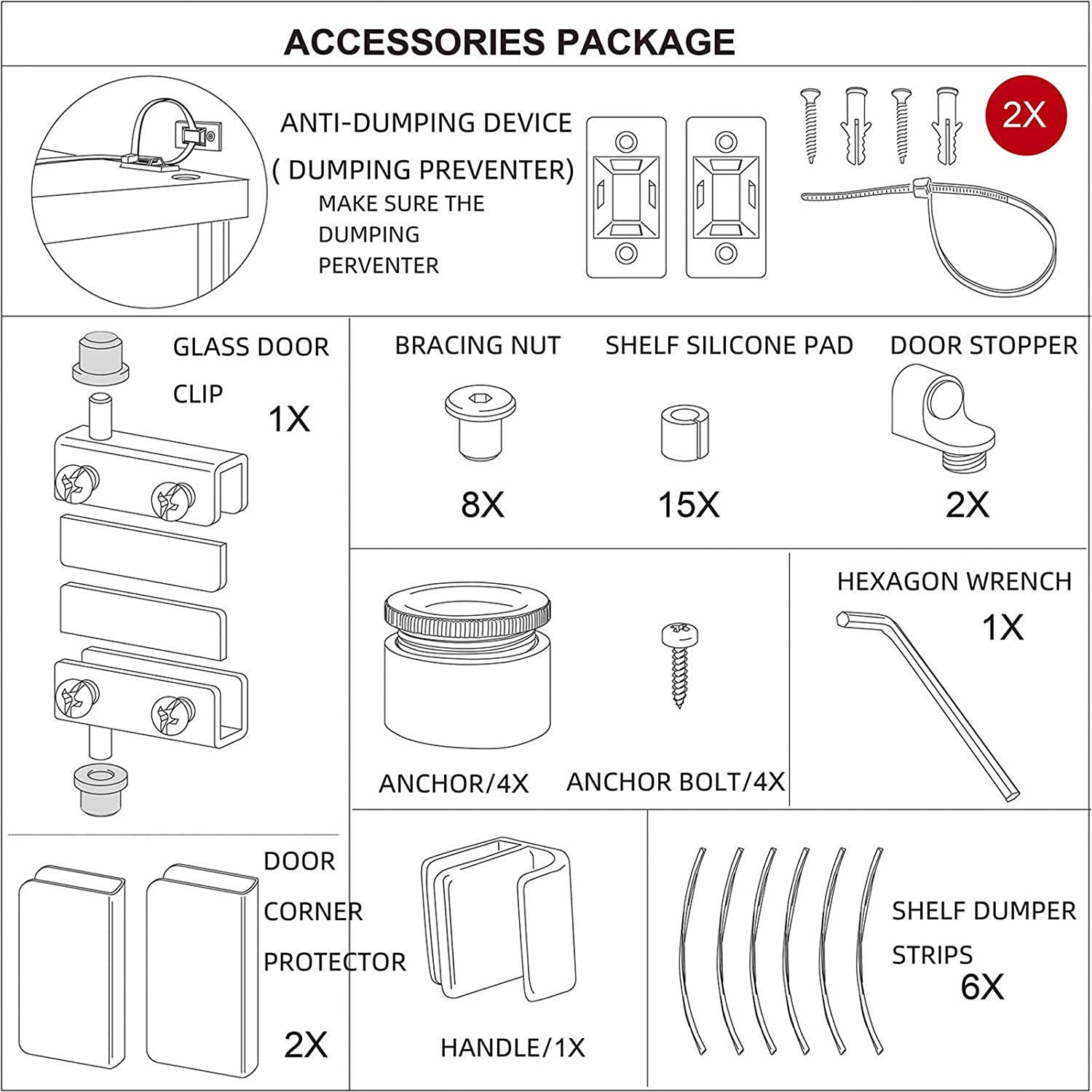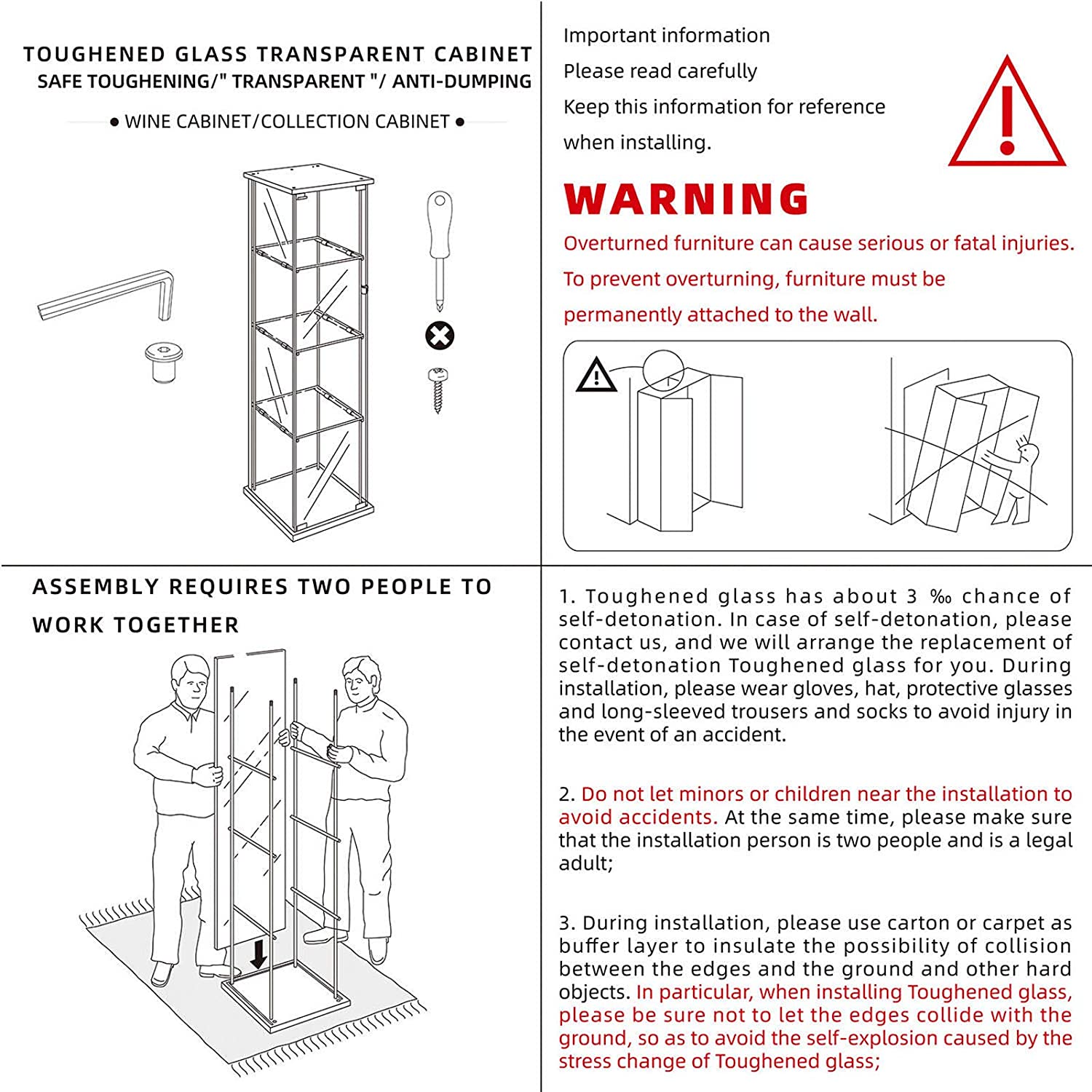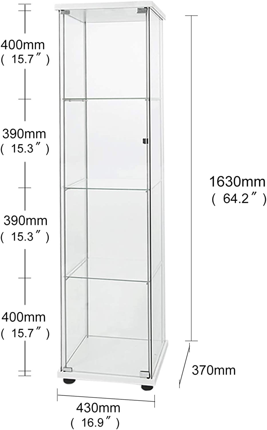 • 4 glass shelves , with glass sides and doors, and a door handle for easy opening,Maximum load-bearing capacity of each tempered glass partition is 7.7 pounds