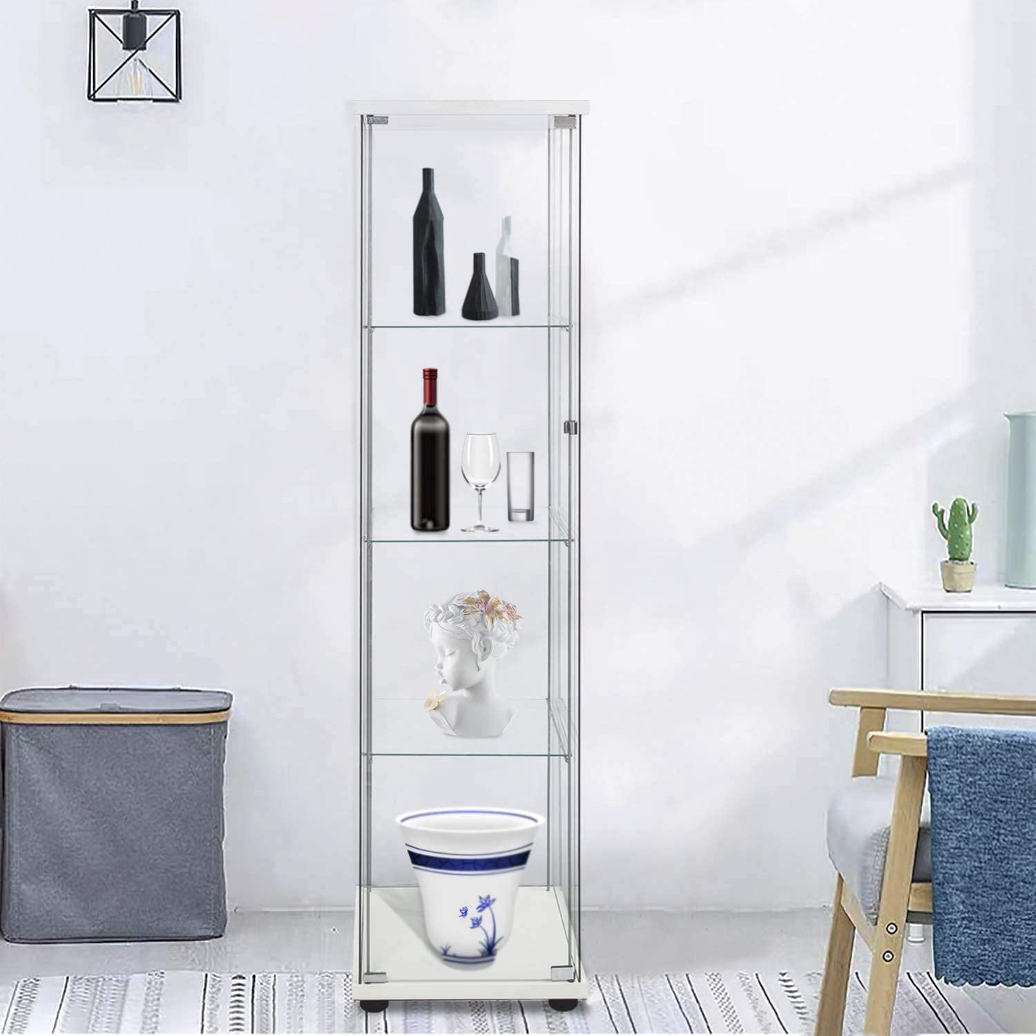 FANYUSHOW Glass-Door Cabinet, 4-Shelf Curio Cabinet,Glass Display Cabinet,White