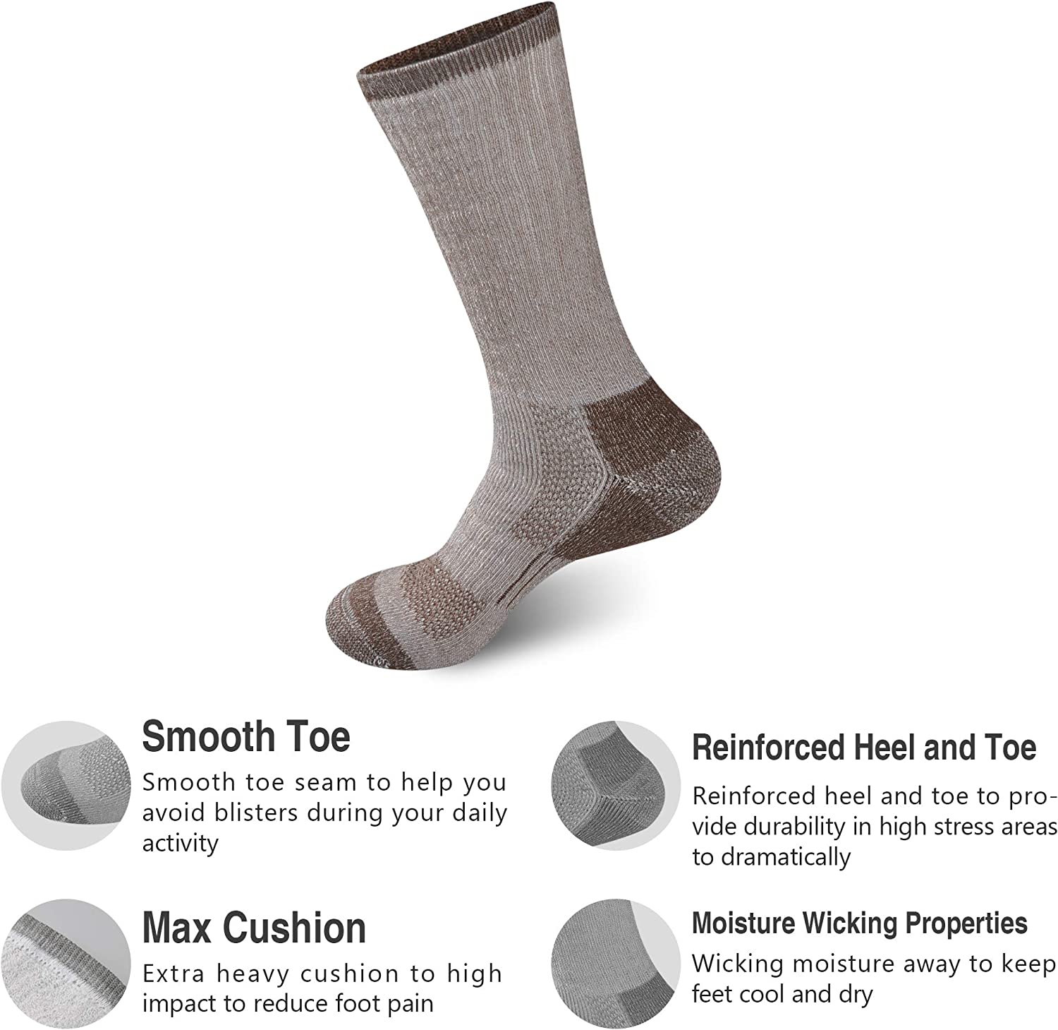 GKX Men's Merino Wool Moisture Wicking Outdoor Hiking Heavy Duty Work Cushion Crew Socks
