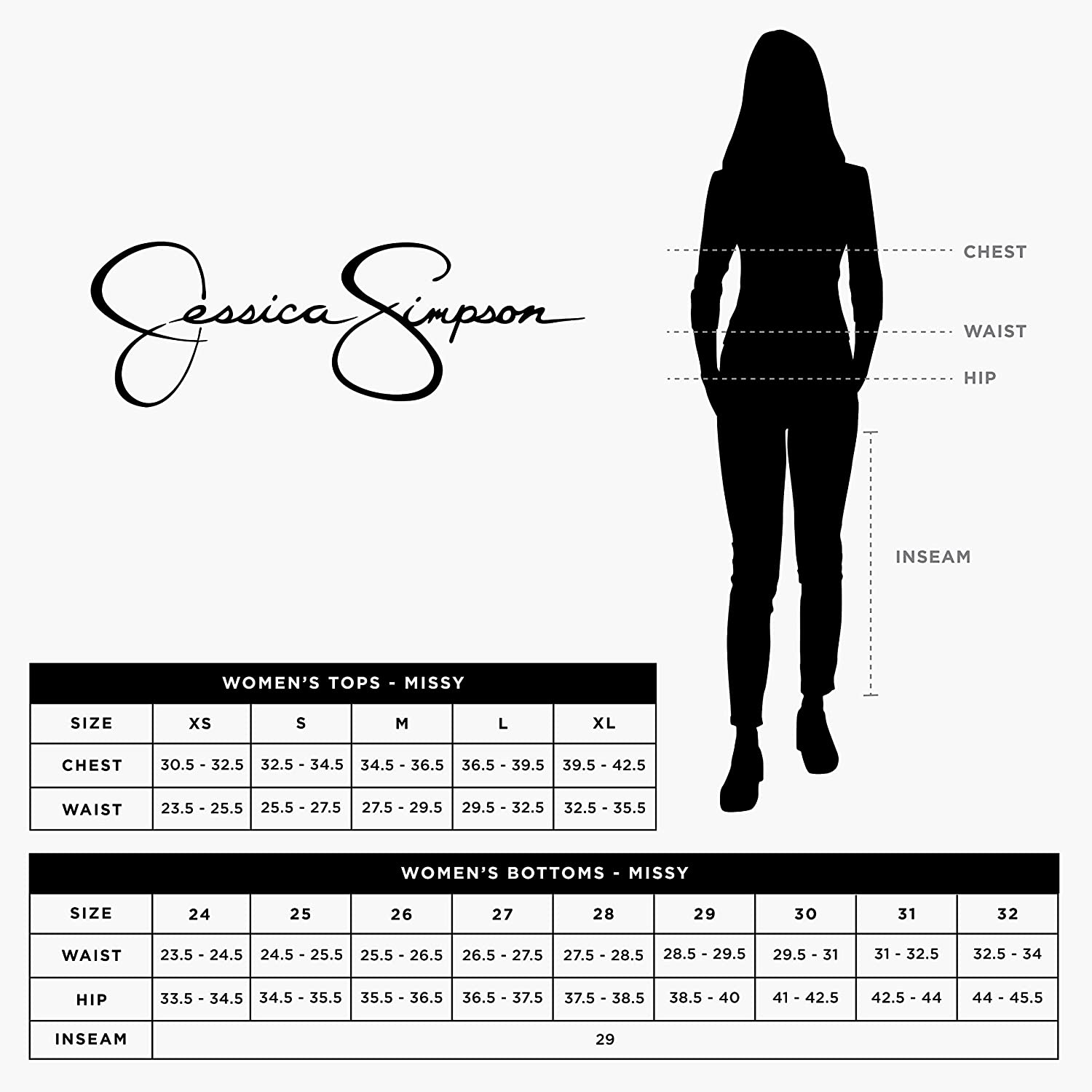 *Skinny jean from Jessica Simpson *High-rise silhouette *Functional 5 pocket design *29 1/2" inseam *53% cotton / 24% viscose / 22% polyester / 1% elastane *Machine wash *Import