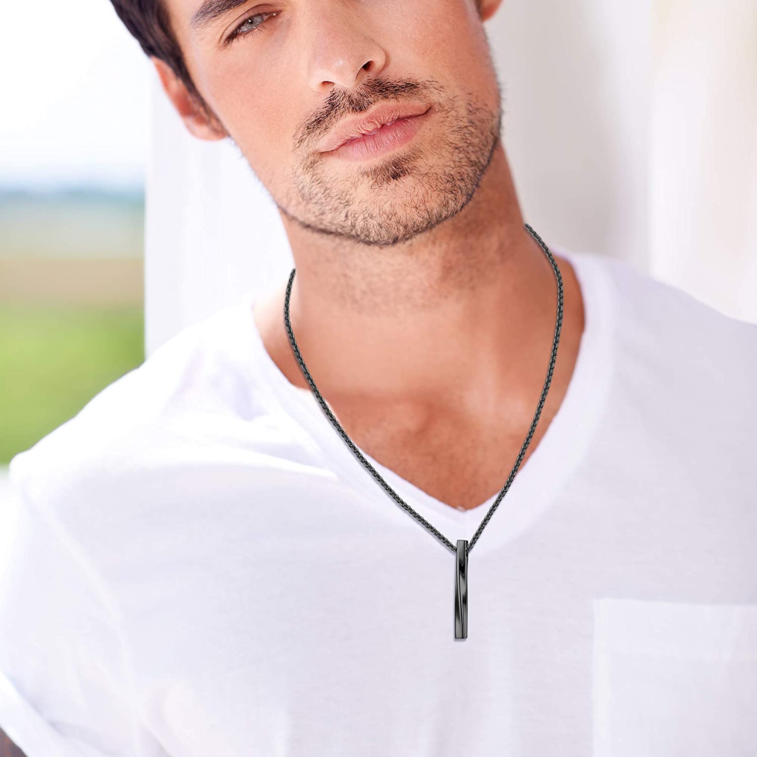 DESIGN & GIFT READY--Black Twisted Cube Bar Pendant Necklace for Men and Boys, Stylish and Shiny, Less but Better.Perfect weight and comfortable to use, daily wearing necklace.Great Gift for Birthday, Graduation, Aniversary, Christmas, Valentine's Day, etc...