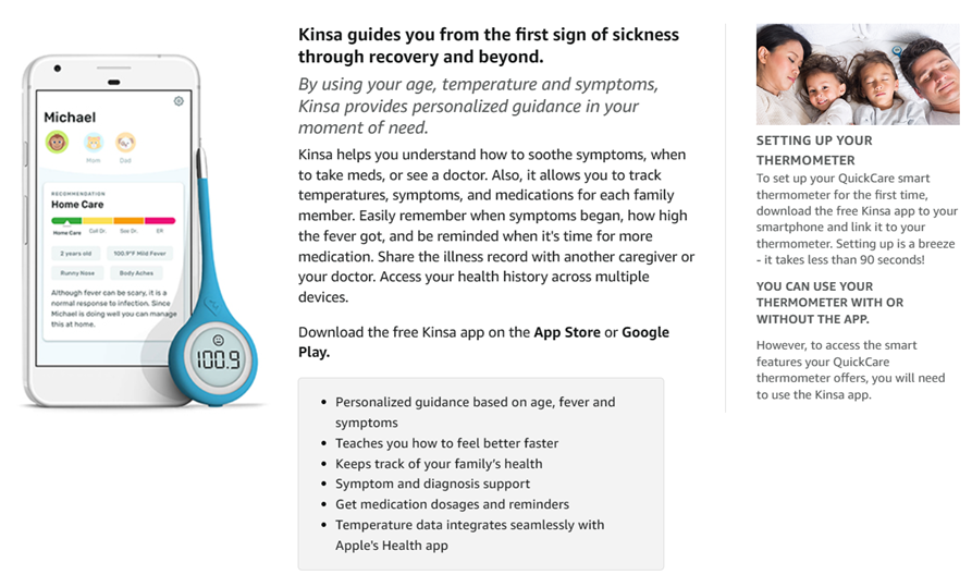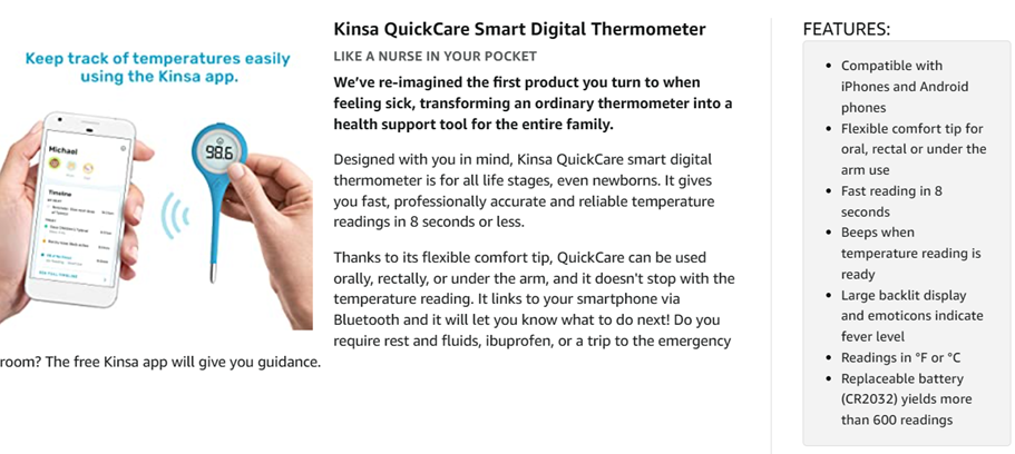Kinsa QuickCare Smart Thermometer for Fever - Digital Medical Baby, Kid and Adult Termometro - Accurate, Fast, FDA Cleared Thermometer for Oral, Armpit or Rectal Temperature Reading