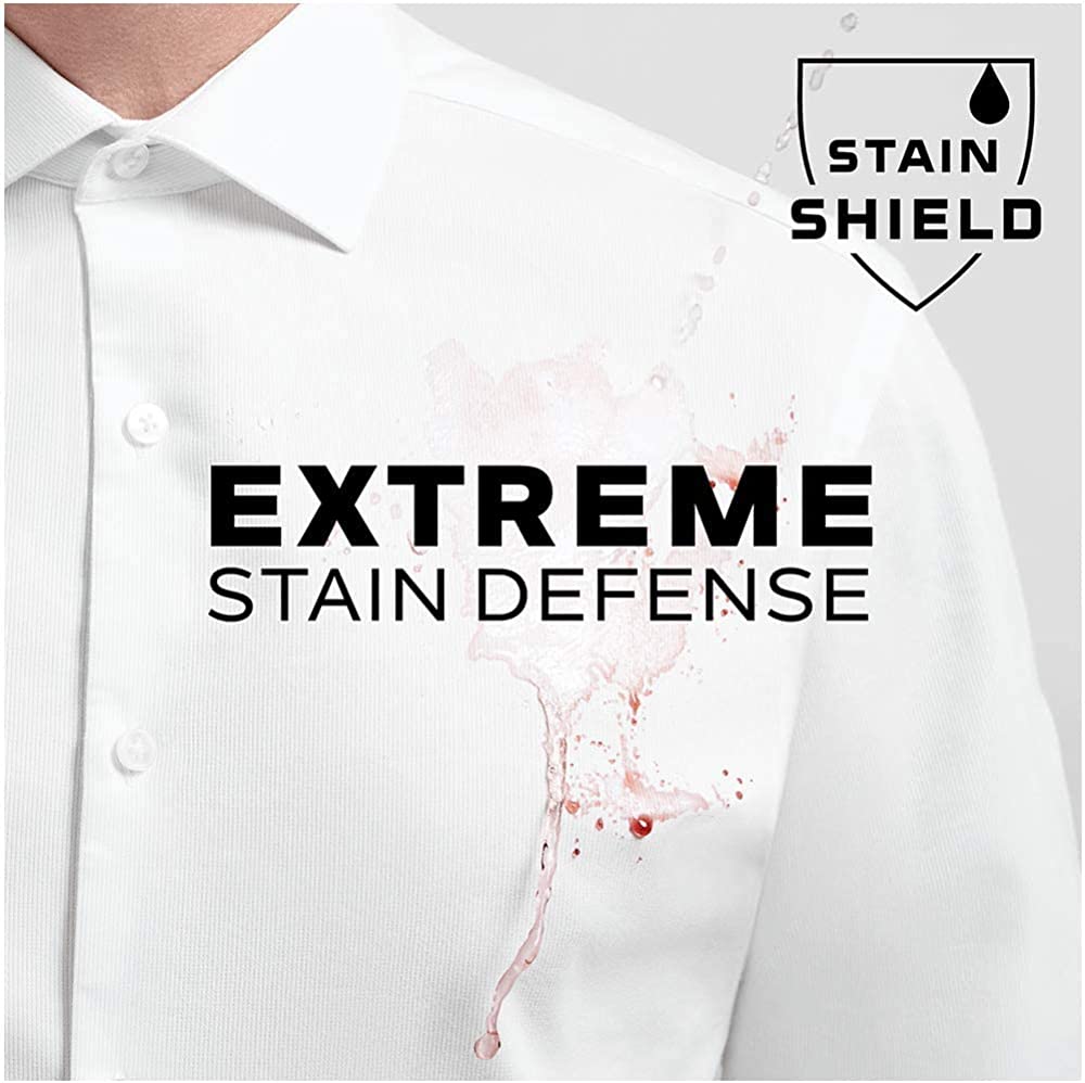 Block tough stains before they start with Van Heusen Stain Shield dress shirts. Designed for extreme stain defense even against tough water- and oil-based spills, this innovative button-up will quickly become your new go-to style at work, home, or out to dinner. When accidents happen, just rinse with running water and watch the mess roll off. The quick-drying, soft fabric also has natural stretch for added all-day comfort. The machine washable style is easy to wear right out of the dryer.