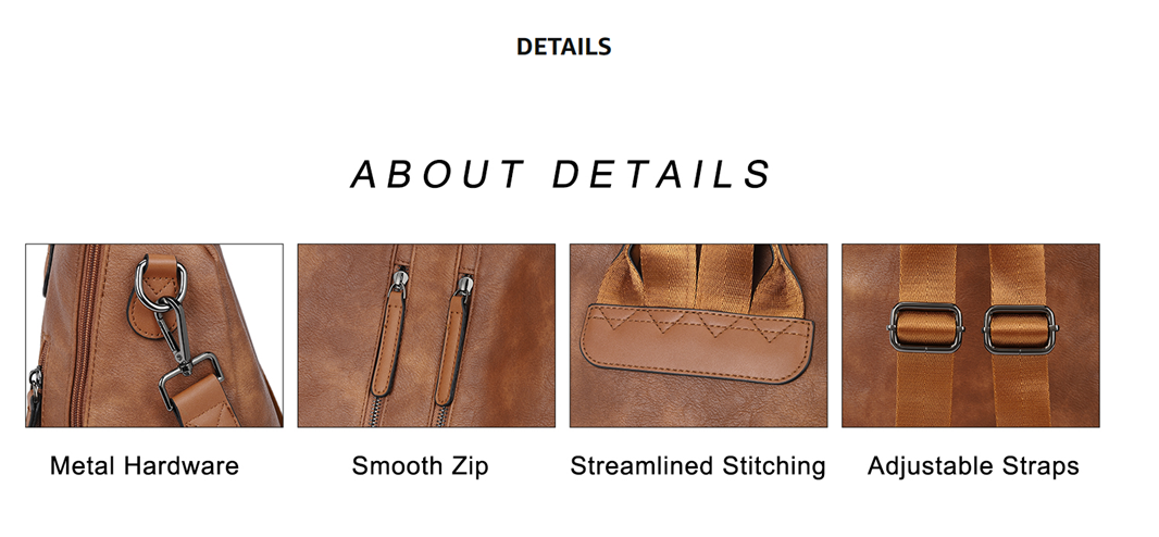 [HIGH-END MATERIAL]: Warm Tip: The long shoulder strap is made of canvas and put on the interior zipper pocket of the backpack, please check it when you receive. Made of PU leather with metal hardware, heavy duty zips and fabric lining, which is fashionable and durable.