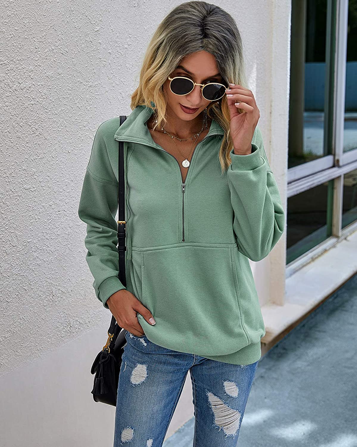 • Features: Half zip pullover women, Solid color cute sweatshirts for women, Lapel half zip up sweatshirt women, Womens sweatshirt no hood, Long Sleeve pullover sweatshirts for women, Ribbed cuffs, 1 front big pocket, Oversized sweatshirt for women, Soft zipper fall sweatshirts for women loose fit, Casual womens sweatshirts no hood, Drawstring neck womens oversized sweatshirts, Quarter zip pullover women