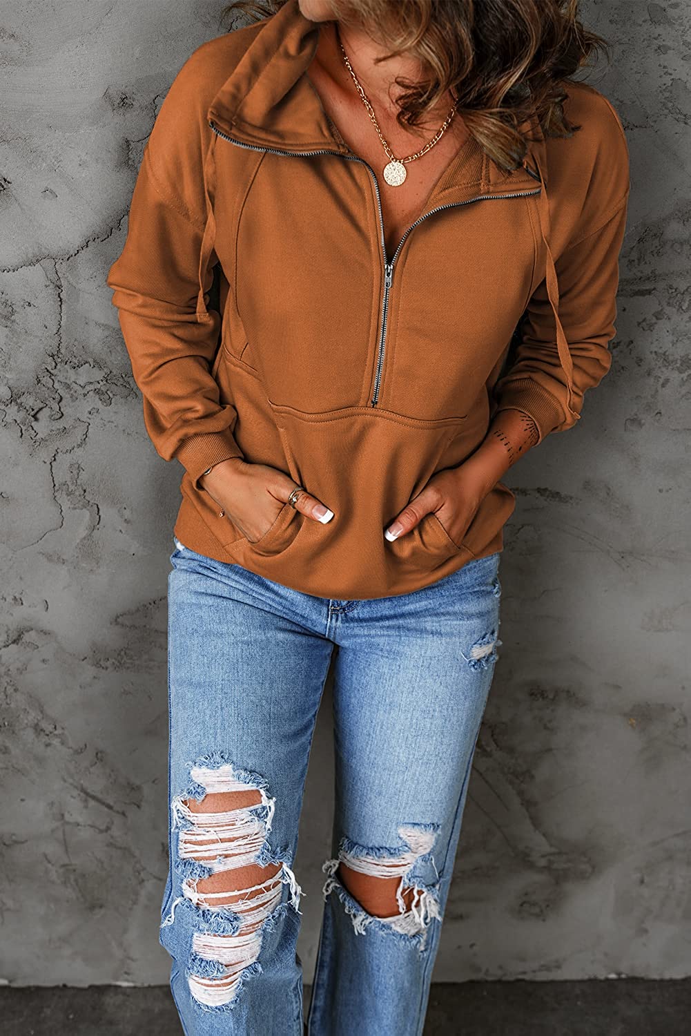 PRETTYGARDEN Women's Casual Long Sleeve Zipper Sweatshirt Drawstring Loose Quarter Zip Pullover Tops with Pockets