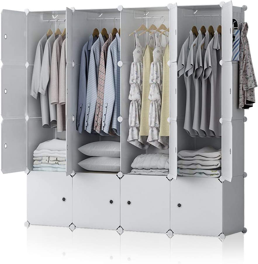 YOZO Cube Storage Organzier Portable Wardrobe Closet Bedroom Dresser (56x18x56 inches) Portable Closet Cube Shelf Armoire Pantry Cabinet, 16 Cubes, White