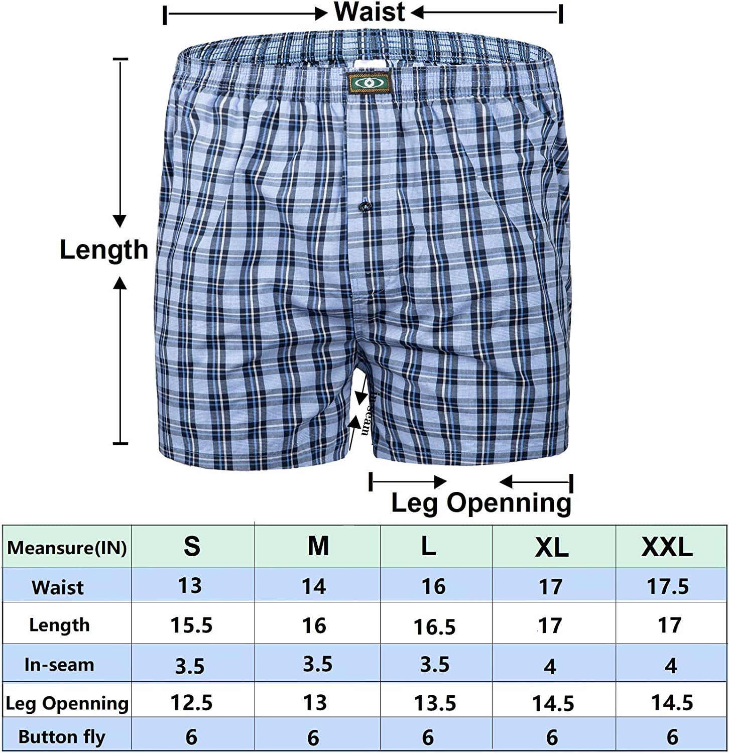 Full cut style: Haoshihe mens boxers is with 4.4’’ inseam. Length is down to mid-thigh and the baggy bottom provides large movements.