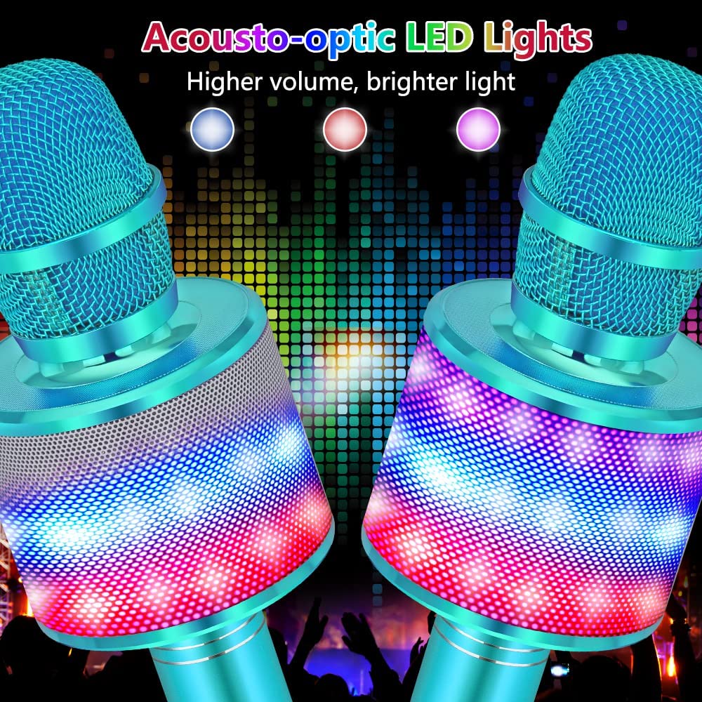 Amazmic Kids Karaoke Microphone Machine Toy Bluetooth Microphone Portable Wireless Karaoke Machine Handheld with LED Lights, Gift for Children Adults Birthday Party, Home KTV(Blue)