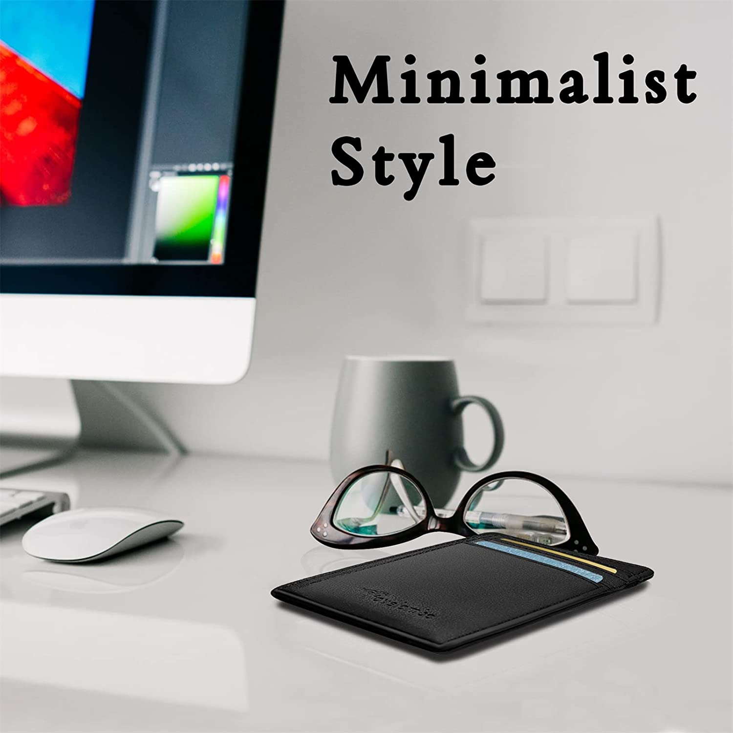 - SUPER MINIMALIST & SLIM: only 0.12" thick, sizing 3.3" X 4.1" X 0.12" extremely convenient to be carried around in your front or back pocket. 100% GENUINE LEATHER: soft and durable.