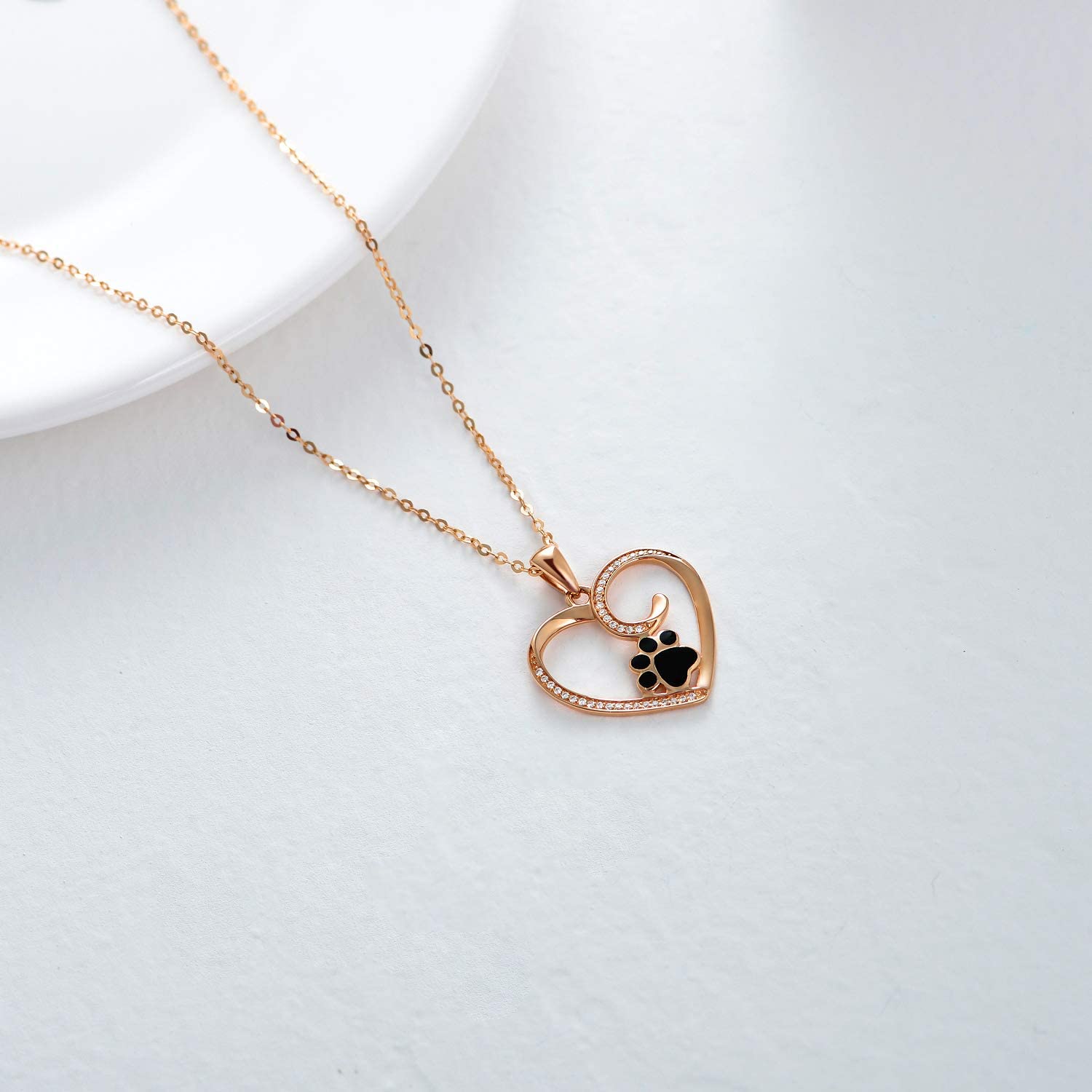 【Design】Black paw love heart pendant decorated with many bright created moissanite stone, this gold love jewelry is a gift for animal lover.