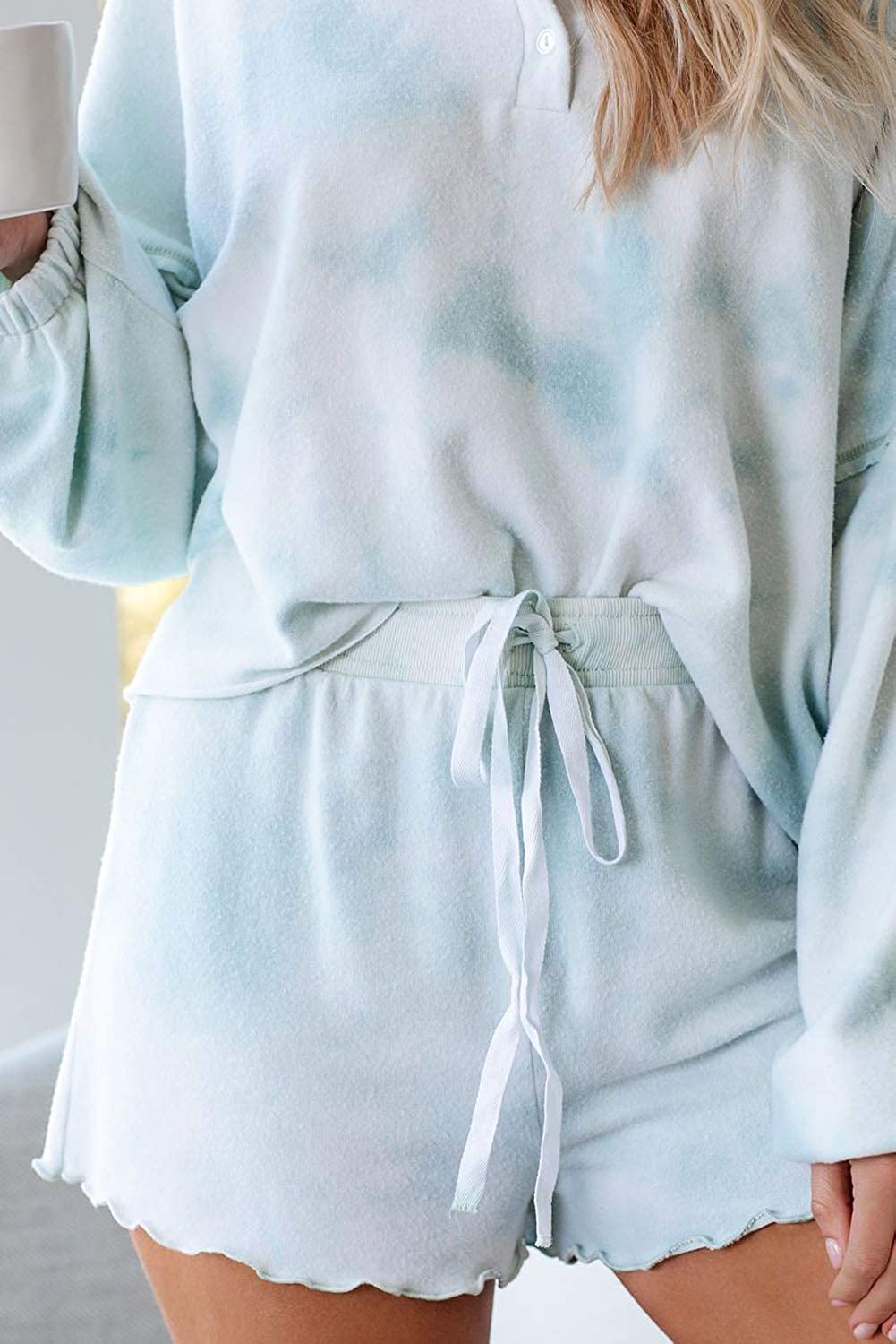 Stay warm and comfy pj set nightwear sleepwear for women featuring a long sleeve with elastic cuffs, tee top and shorts pajamas set