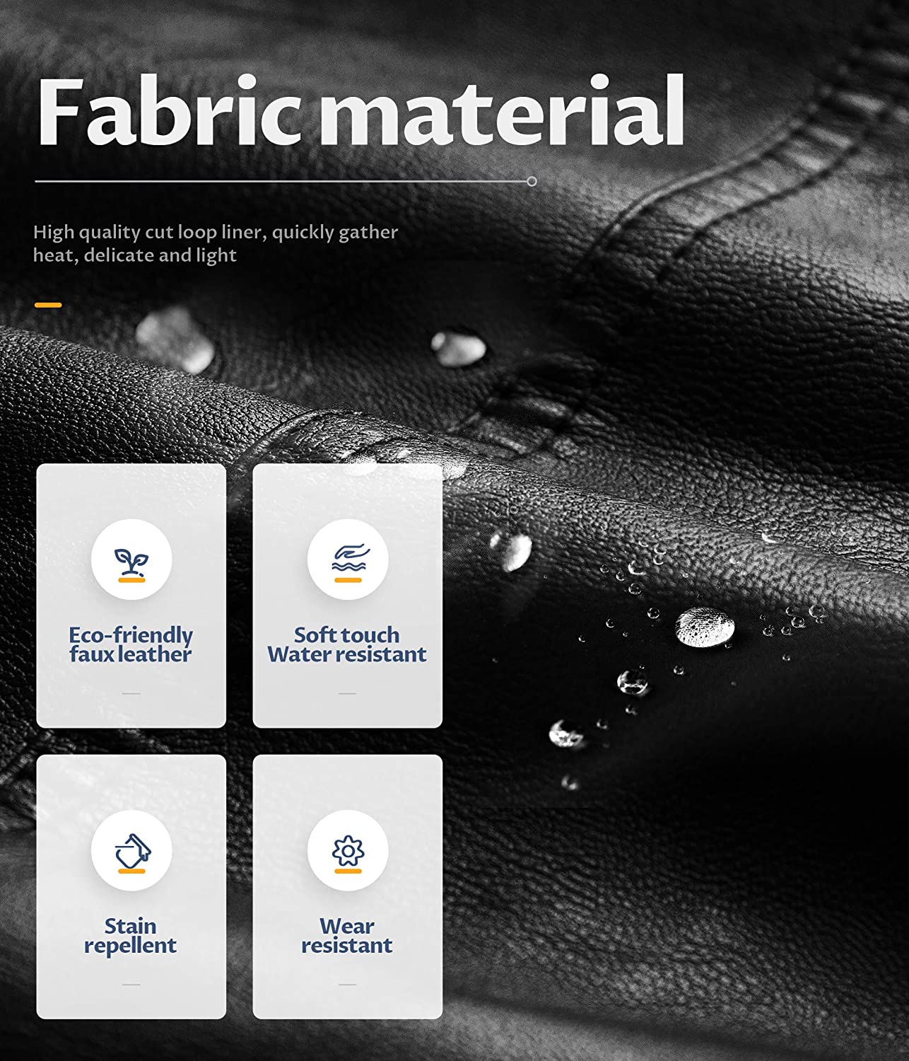 ▶ Warm & Waterproof fabric--Durable faux leather jacket is made of PU overlays for water-repellent durability, matched with soft cotton quilted lining for freezing cold winter.