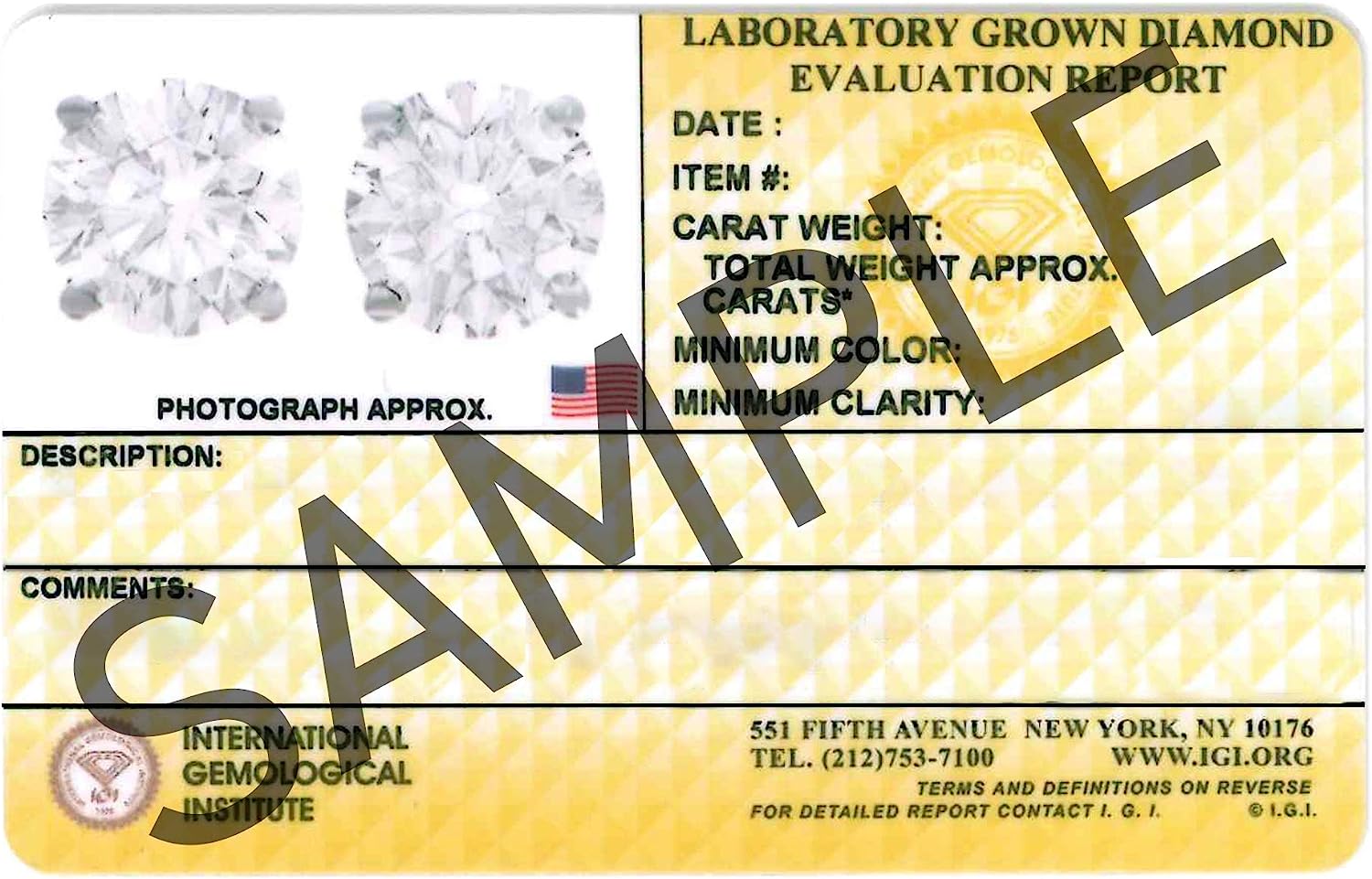 Earrings ship complete with official certificate from the International Gemological Institute (IGI). The world's largest independent laboratory for testing and grading gemstones and fine jewelry.