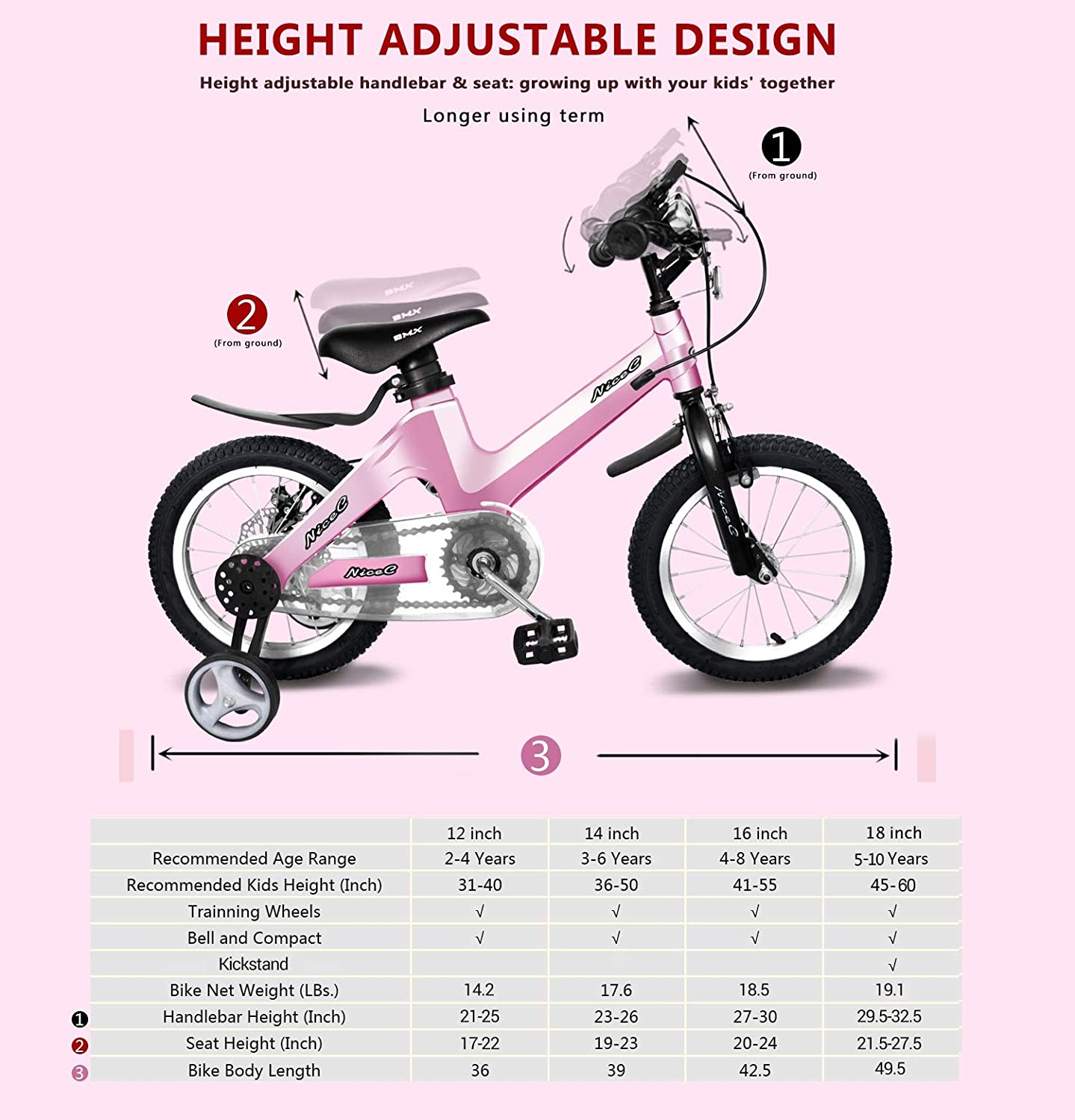 - HIGH-QUALITY MATERIAL & ULTRA LIGHTWEIGHT: The Nice C BMX Kids Bike is made from high quality magnesium alloy metals that allow the bike to be both lightweight and heavy duty. Weighing only 17.6 lbs., this bike is one of the lightest bikes on the market. The lightness lets you better control the bike.