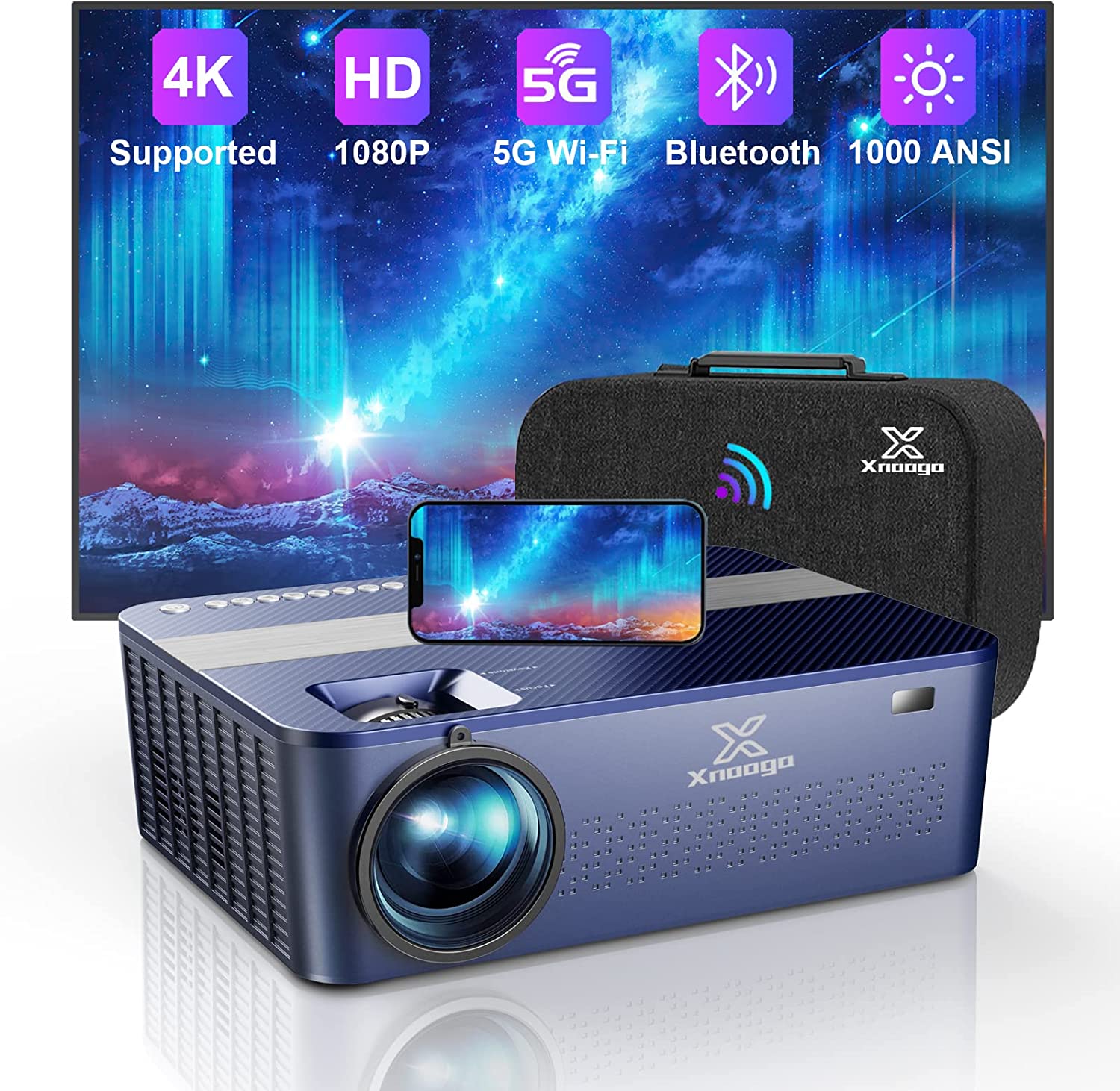 [Auto Focus Android TV Projector] Outdoor Projector 4k with WiFI6 and Bluetooth,XNoogo 1200 ANSI Movie Projector 4k+ 500" Support Zoom,Dolby,Auto Keystone,Home Theater Projector with Netflix Bulit-in