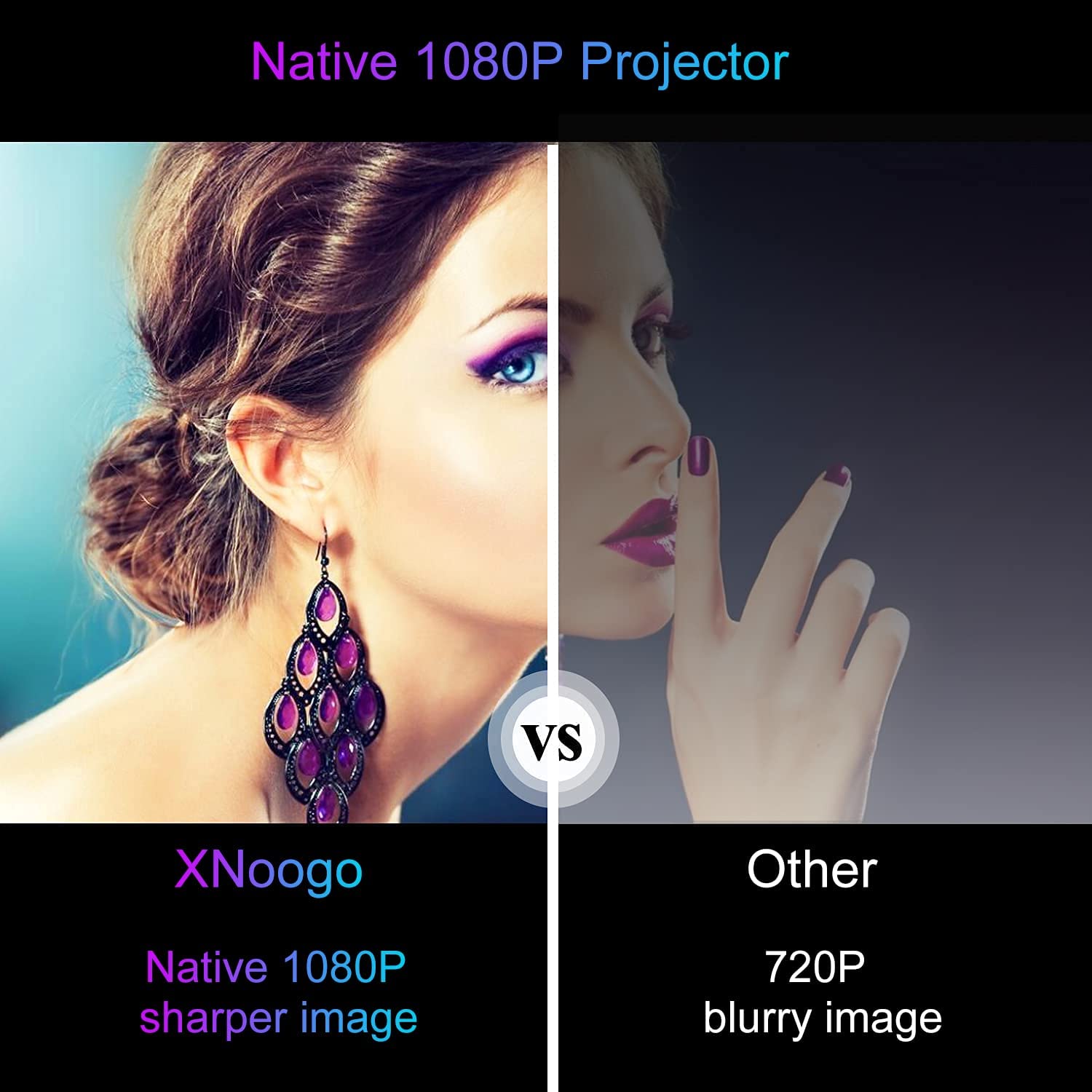 • 【Auto Focus & Auto Keystone Correction】Effortlessly getting a sharp and rectangular image in seconds after powering on! XNoogo 4k projector comes with AUTO-FOCUS and AUTO-6D-KEYSTONE technology, saving hassle of manually adjustment. The displacement gyroscope and sensor detects every movement of the smart projector, adjusts the lens automatically to ensure images stay clear.