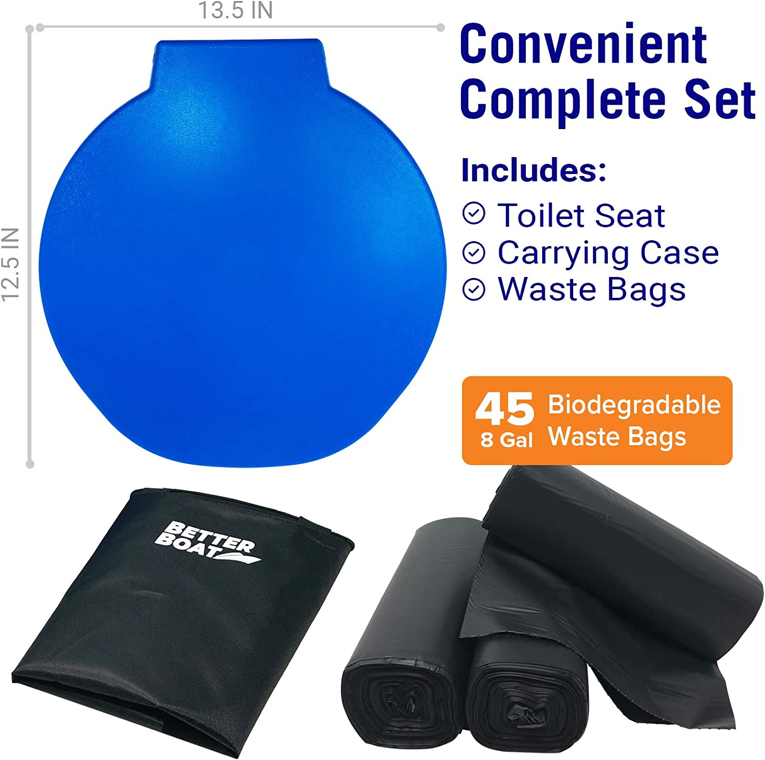 - INCLUDES 45 BIODEGRADABLE BAGS: Our portable toilet seat 5 gallon bucket with lid and cover kit comes with 3 rolls of 15ct 8 gallon waste bags. Earth-friendly bags that break down. When done, discard composting toilet bags in the trash or bury them.