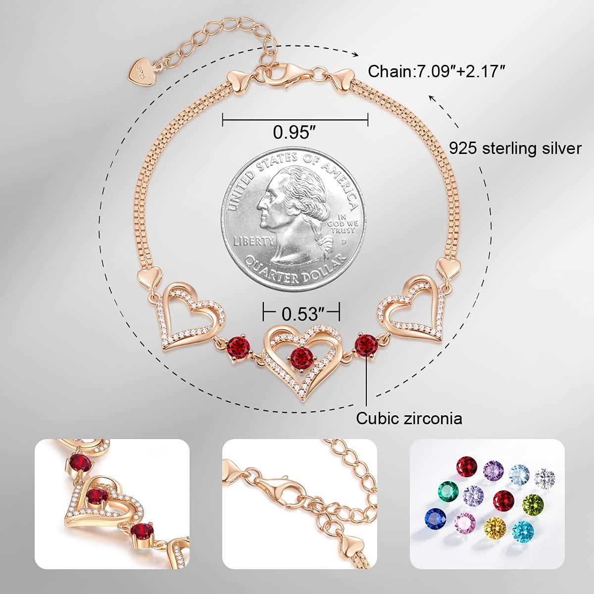- ✦ JEWELRY GIFT BIRTHSTONE BRACELET ✦ This 2020 link chain bracelet is a stylish jewelry gift for mom, grandma, girlfriend, wife, daughter, or friend. Secured with double chains, the interlocking heart bracelet symbolizes love, commitment or friendship for a loved one. Given as a Christmas gift, birthday gift, wedding gift, anniversary gift, graduation gift or Valentine's Day Gift.