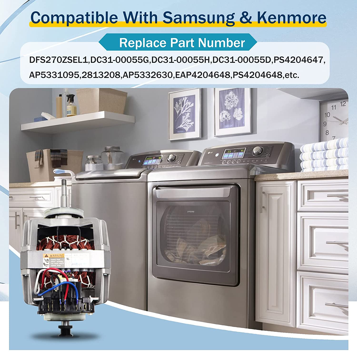 DC31-00055G DC31-00055D DC31-00055H OEM Dryer Motor Compatible with Samsung & Kenmore Dryer,Replaces DC31-00055G DC31-00055D,DC31-00055H,PS4204647,DC96-00882C, 2813208,PS4133825,2 Year Warranty