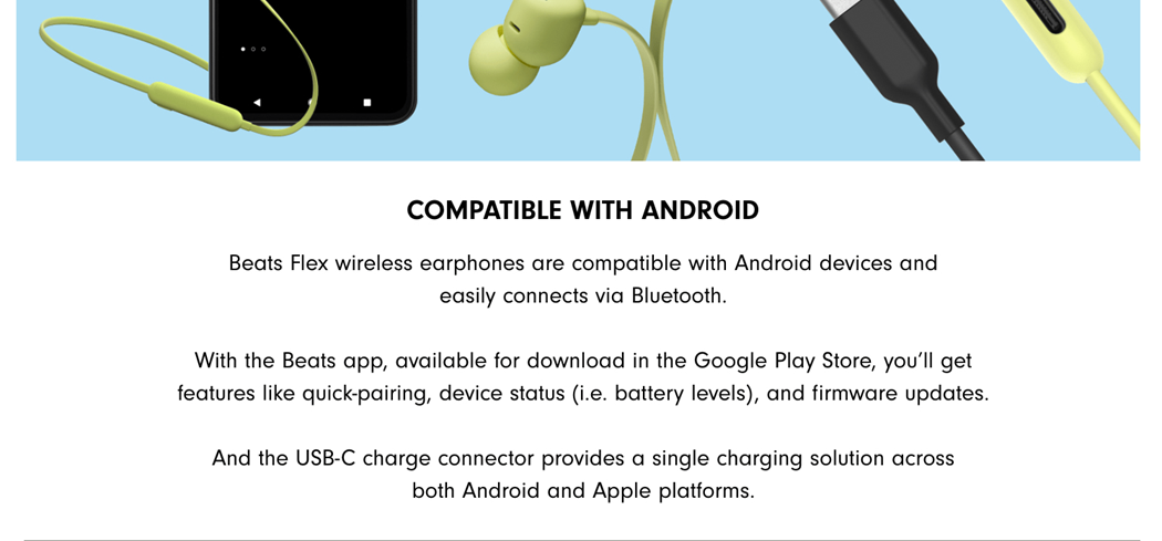 Beats Flex provides up to 12 hours of playback from a full charge.