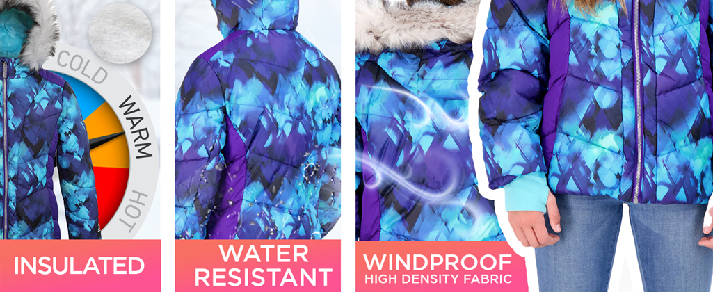 • Exterior repels moisture and protects her from the wind. The ZeroXposur Marianne girls winter coats will keep her dry during rainy or snow days.