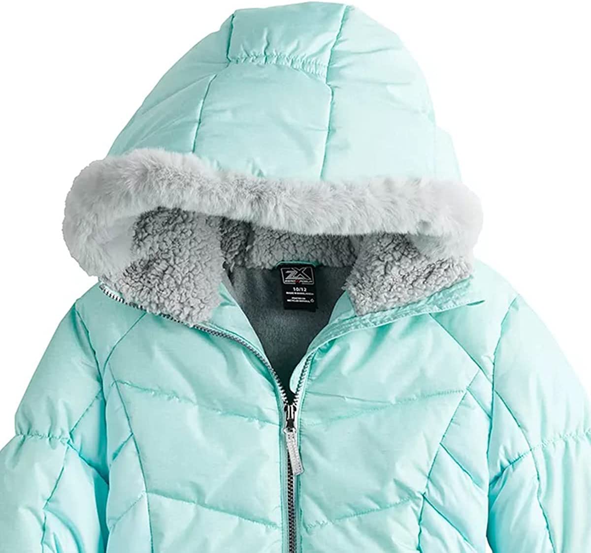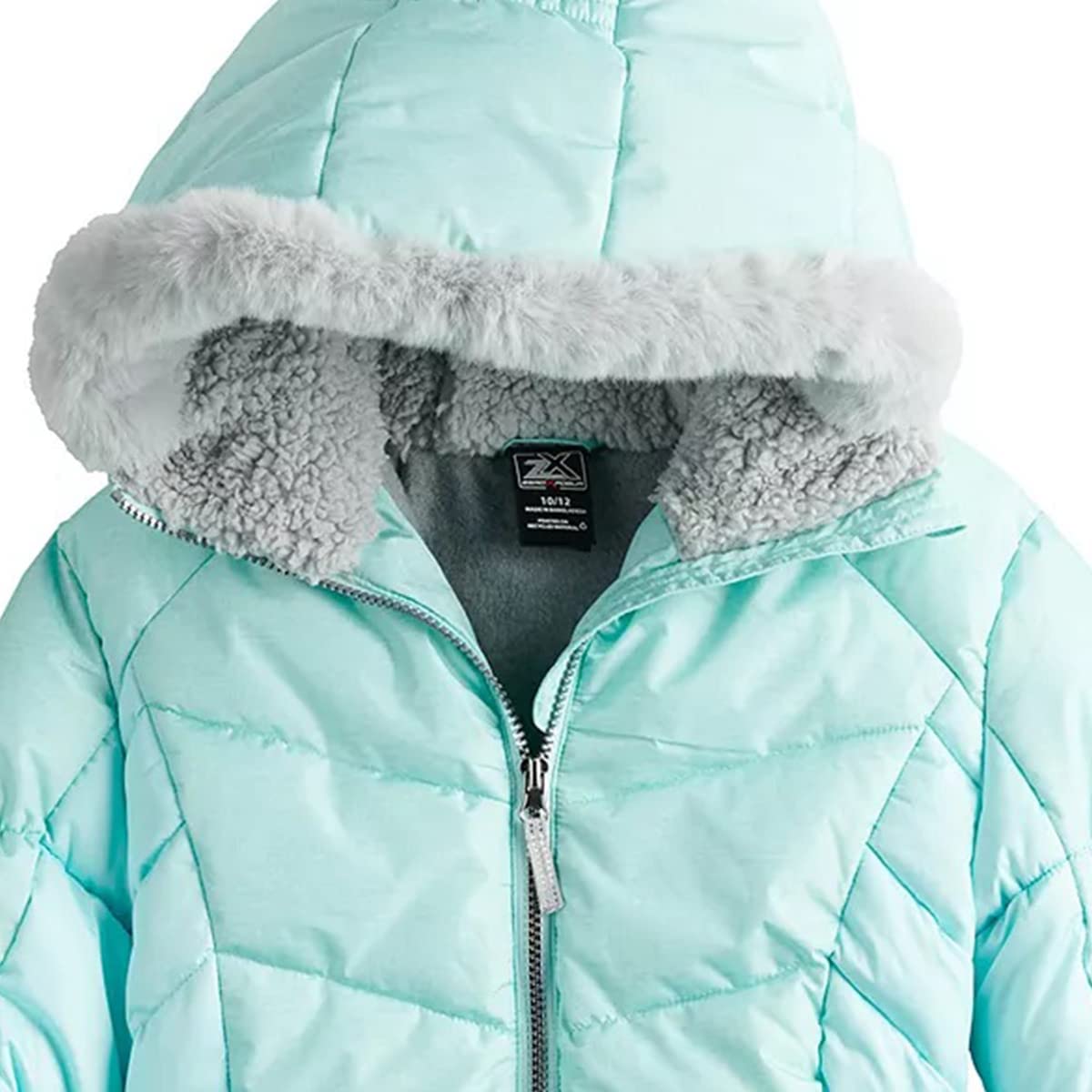 ZeroXposur Girls Puffer Jacket Fleece lined Winter Coat with Lined Hood and Removable Faux Fur Trim
