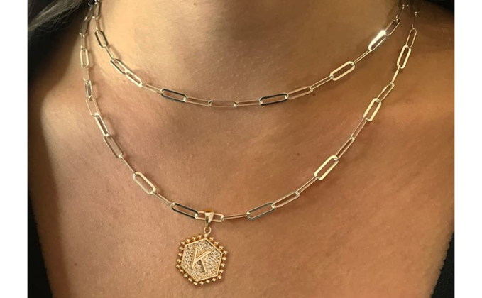 LAYERING INITIAL NECKLACES: Gold layered paperclip chain letter initial necklaces set with hexagon charm, engraved with initial and heart in back and front, large initial pendant dainty necklaces for women teen girls jewelry.