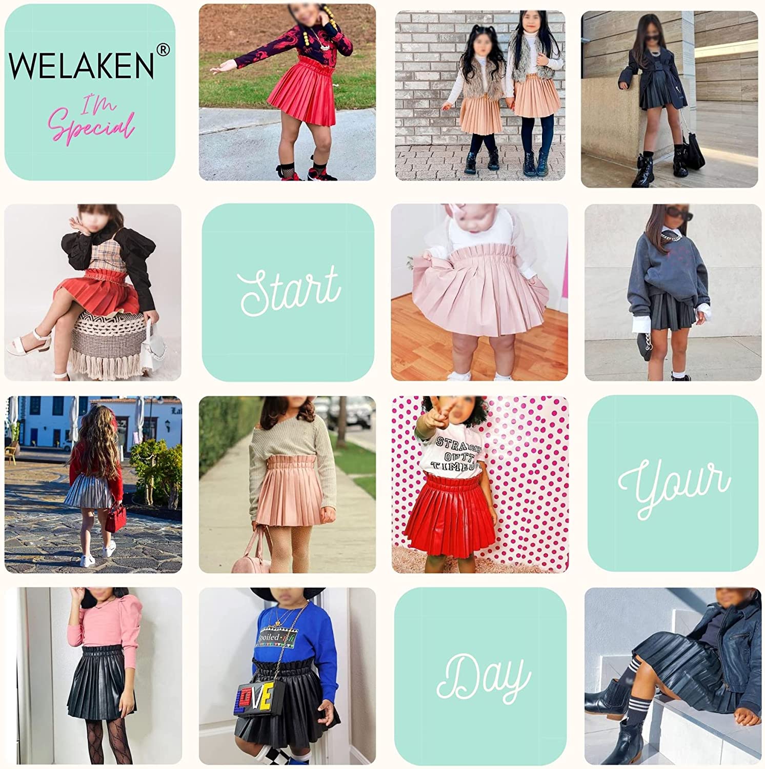 FEATURES: Elastic waist PU leather skirt, middle- length, neat folds. WELAKEN Girl's PU skirt will give you and your little one a perfect street look and makes you more outstanding in the crowd.