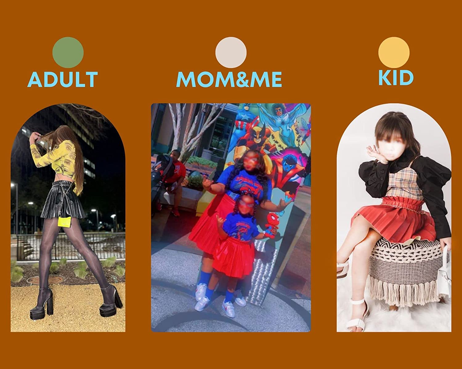 COLORS:Our Girl's Leather skirt is available in Many colors: black skirts, red skirts, pink skirts, Blue Skirts, White Skirts ,gold and silver skirts. Each color can be worn in different styles.We will continue to update the Popular color. It has 10 size fits from toddler girls to teen girls and women, 3T-6Y for little girls, 7-14 for big girls, 12Y-XL for teen girls and Women. As it comes in Many different sizes, you can also wear this accordion skirt with your child as a Family outfit.