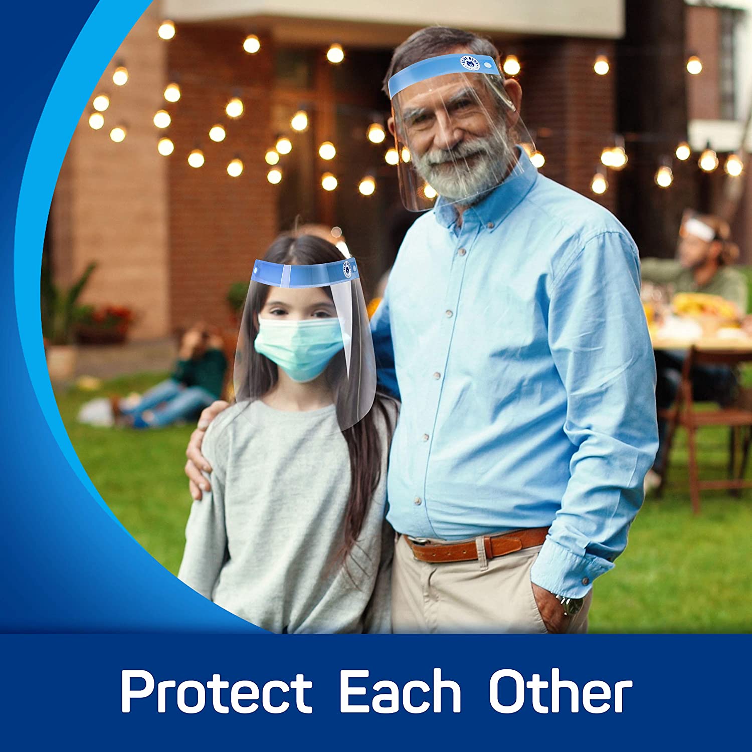 Reusable Face Shield 10-Pack, Lightweight, durable, and reusable safety face shields with a comfortable foam headband provide 180 degree protection. These are clear face shields for women and men.