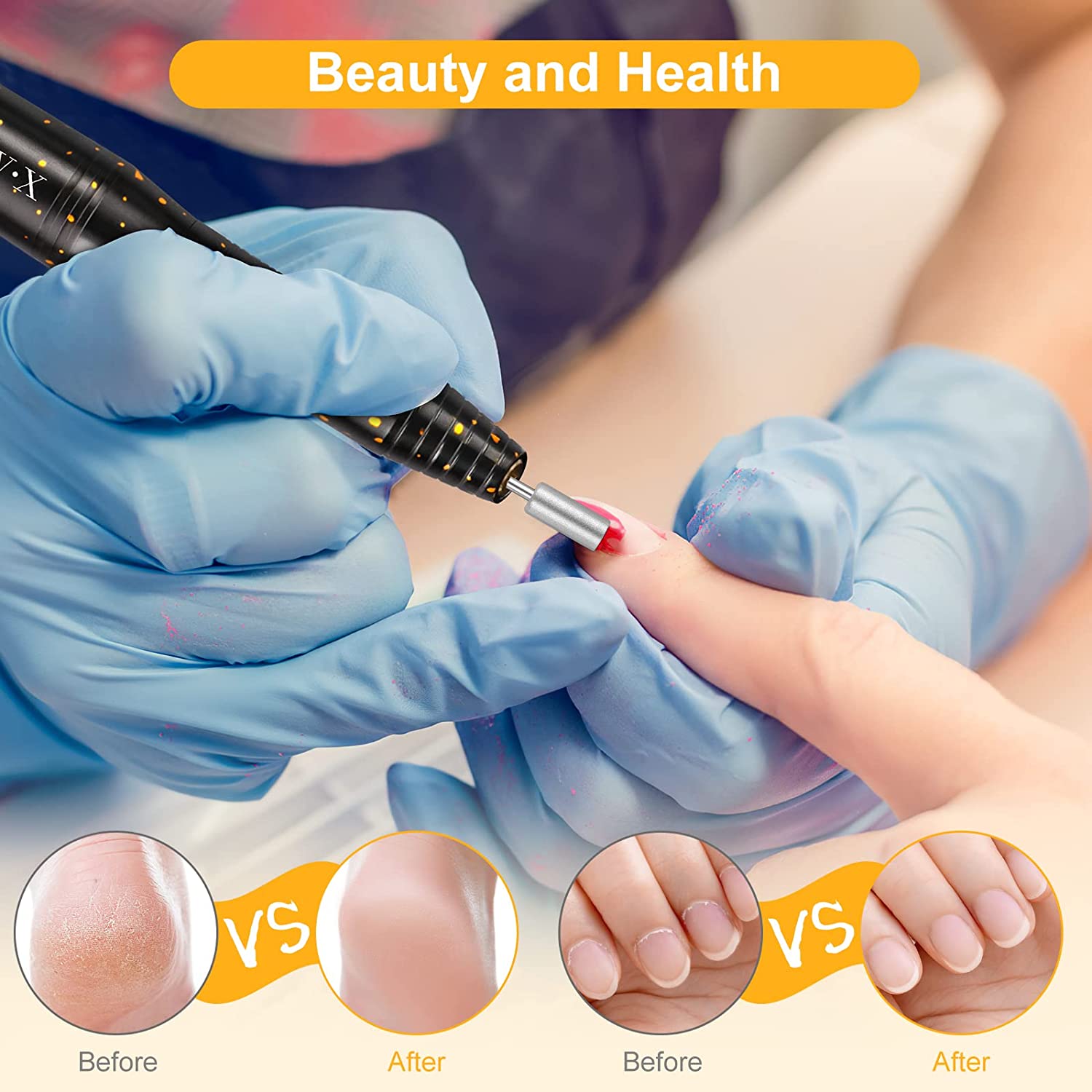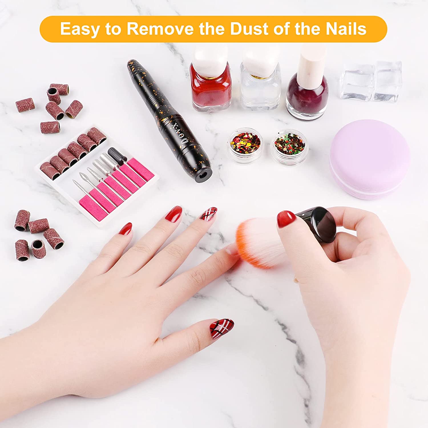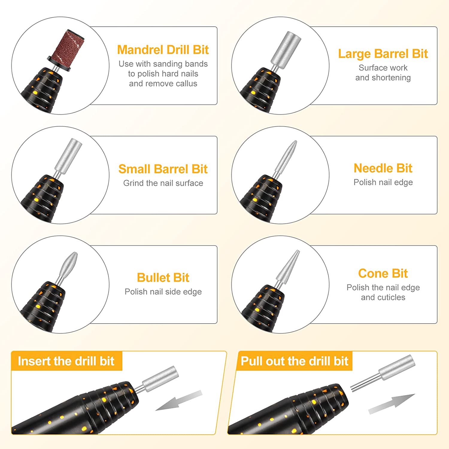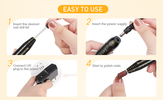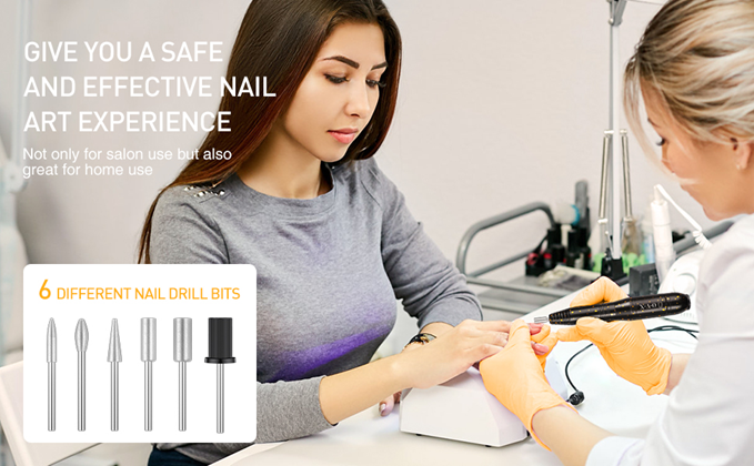 • Professional Nail Drill Set : The sets with 6 different drill bits, 106 sanding bands, 1 nail brush. It is can be used for manicure, pedicure, polishing and removing excess cuticles, or pets nail beauty and so on. Good choice for both home and salon use.
