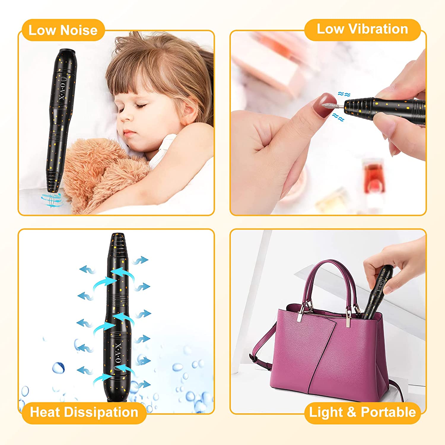 • Efficient Dissipation:Aluminum alloy body makes it efficiently dissipation so that you will feel low heat when you do manicure or pedicure. Attention:We recommend that no more than 20 minutes of continuous use each time.