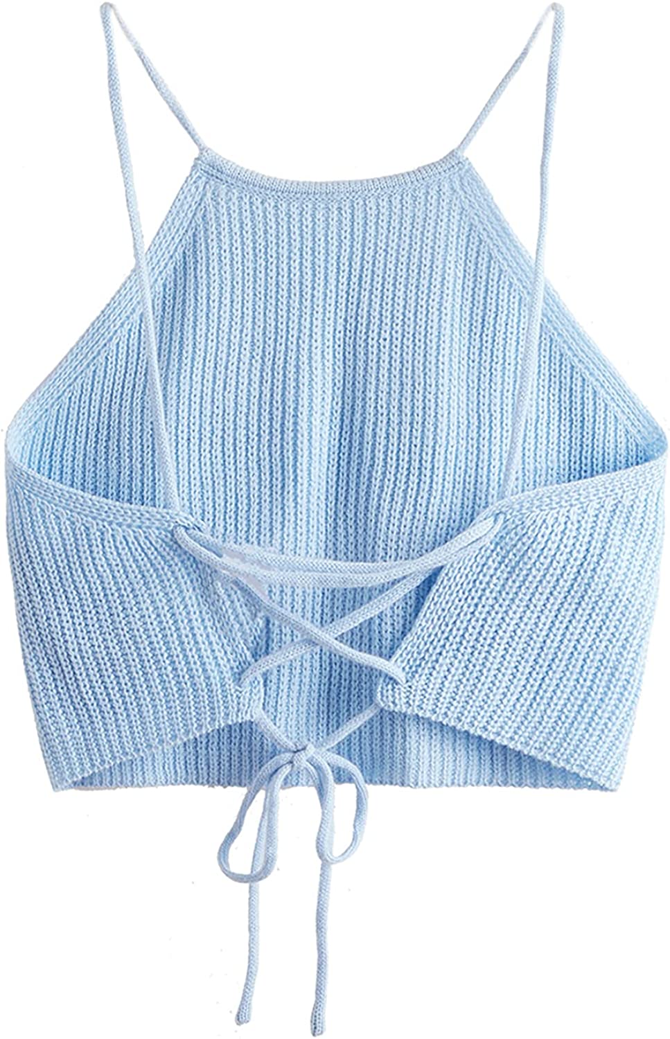 SweatyRocks Women's Sleeveless Space Dye Knit Camisole Criss Cross Backless Crop Top