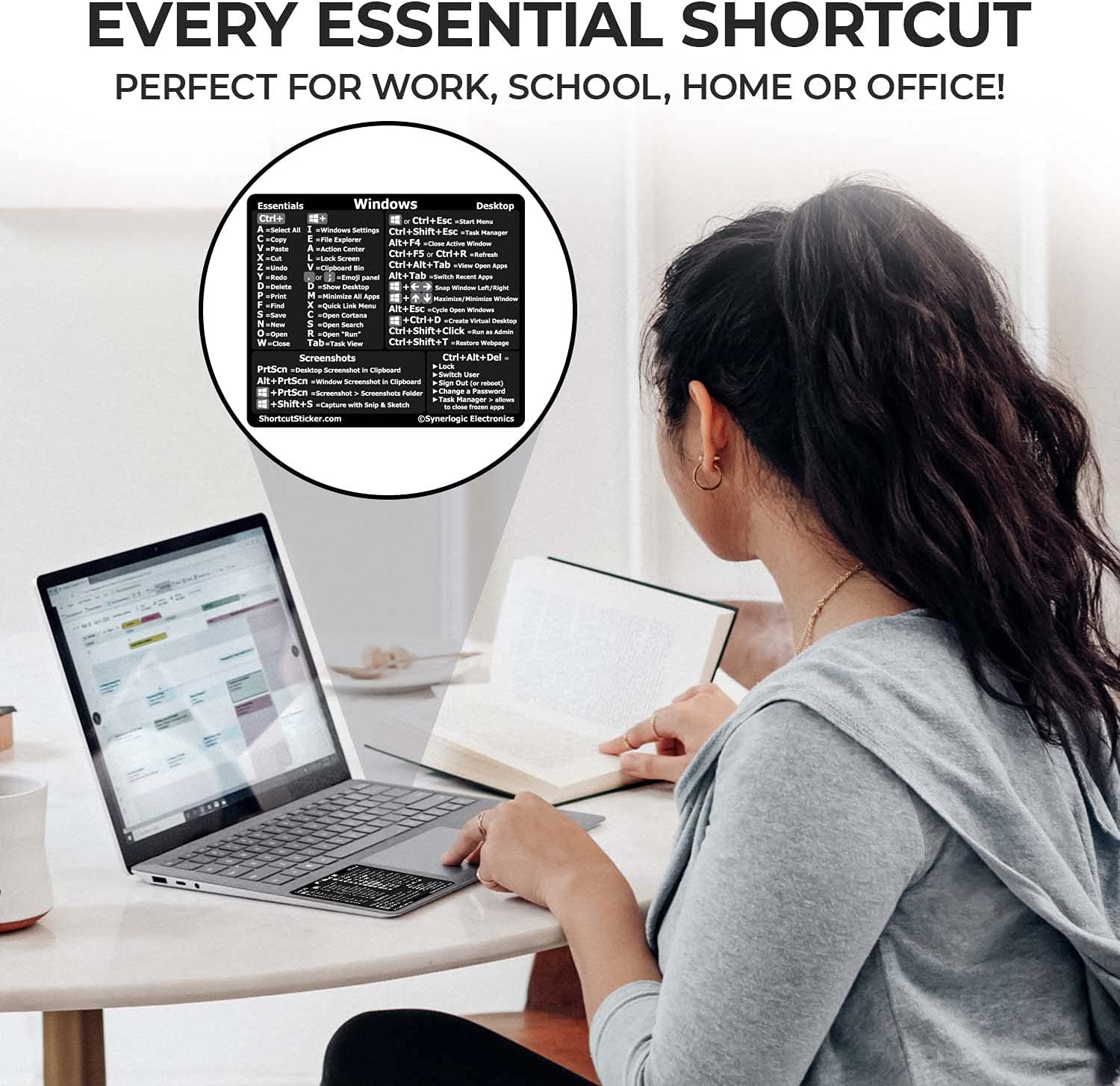Your Windows Essential Shortcuts Sticker is an accurate, comprehensive list of keyboard shortcuts that you need. It contains a list of shortcuts for any laptop or desktop running Windows OS 10, and fits easily on the bottom corner of your laptop so you can quickly look down and read it. It is perfect for the beginner who wants to learn how to use their laptop and save time by having the key Windows shortcuts at their fingertips. Designed by SYNERLOGIC, the sticker is made of high-quality laminated chemical-proof vinyl and is more durable and convenient than a printout of the shortcuts.