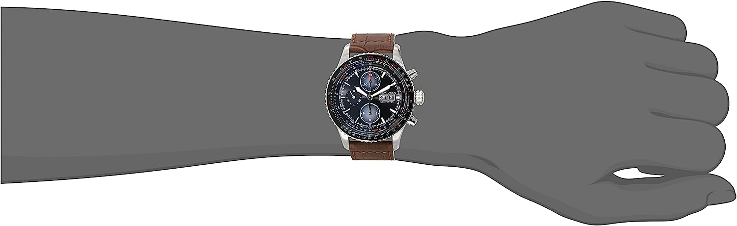Hamilton Watch Khaki Aviation Converter Swiss Automatic Chronograph Watch 44mm Case, Black Dial, Brown Leather Strap (Model: H76726530)