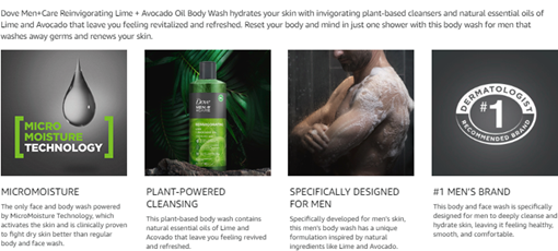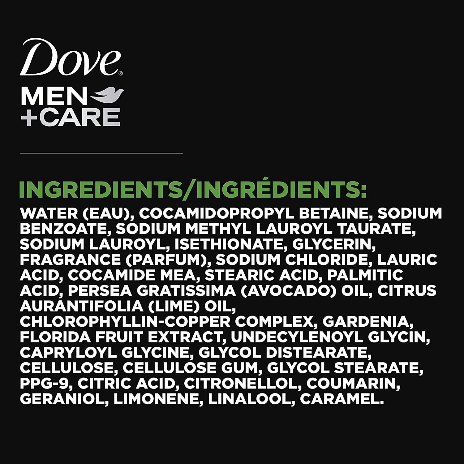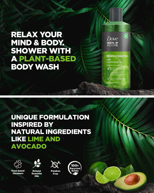 • Dove Men plus Care Lime plus Avocado Oil Body Wash for men hydrates your skin with invigorating natural essential oils and plant-based cleansers.
