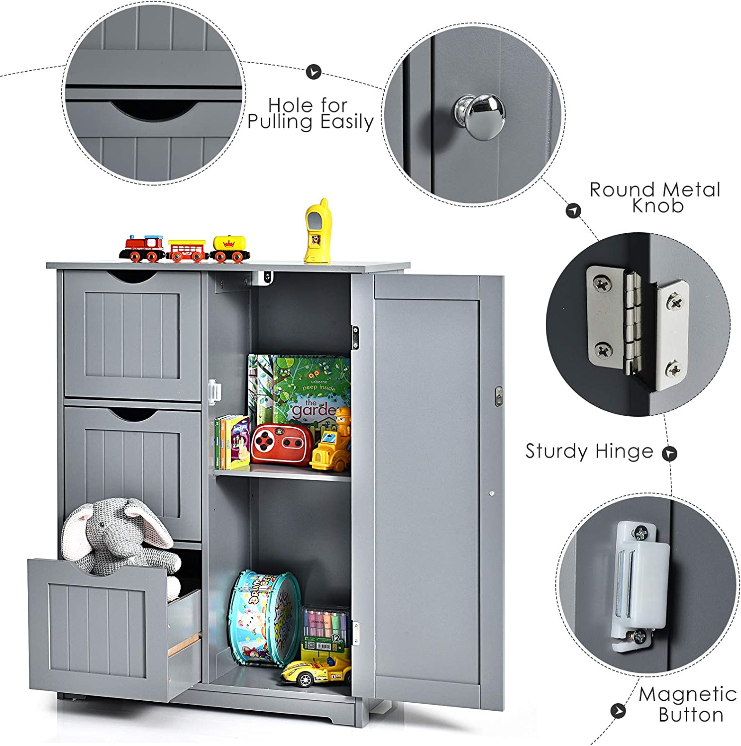 Large Storage Space: Comes with 3 drawers and a cupboard, this storage cabinet will provide spacious space for your items such as toys, books and bottles. And the top of cabinet can display decors. In addition, the door is equipped with magnetic snap to prevent accidental opening.