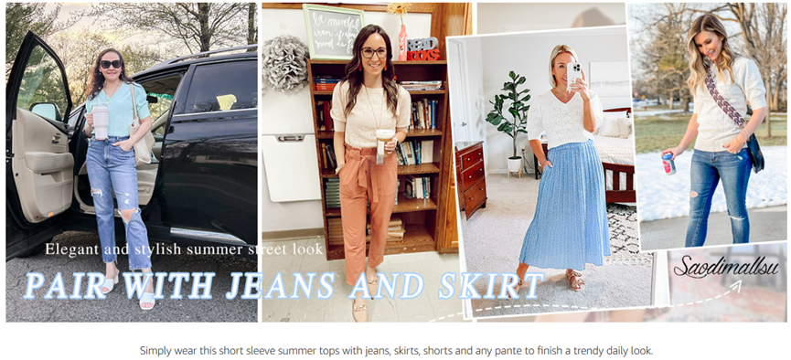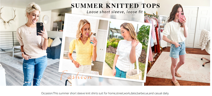 • Easily pair this short sleeve sweater with shorts, jeans and skirts to finish a modest, elegant and stylish summer street look. Pointelle design looks chic but not so sexy.